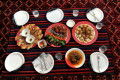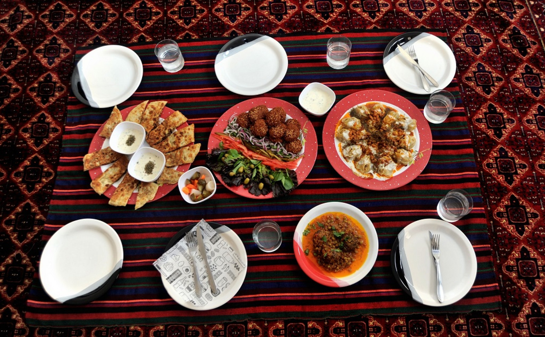 Os brasileiros são conhecidos pela hospitalidade, mas a simpatia do povo afegão não fica atrás. A reportagem foi convidada para um brunch, uma refeição que se encaixa entre o café da manhã e o almoço, repleta de pratos do cardápio da “Cozinha da Zakia”. A sala, adornada com o tapete persa, ganhou ainda mais cores e vida com a presença dessas iguarias.
