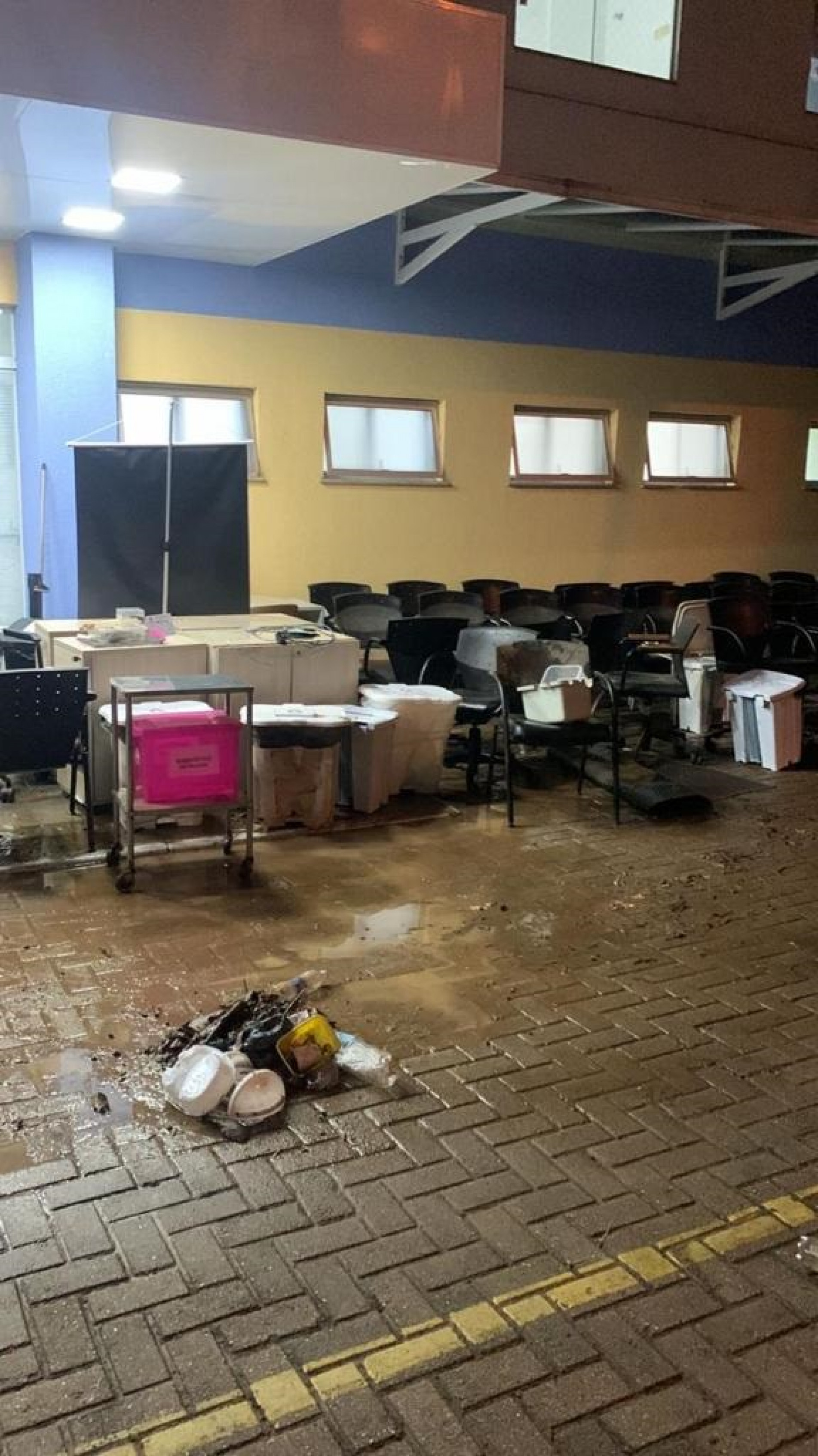 A água subiu rapidamente, causando grandes prejuízos. Os setores impactados incluem recepção, odontologia, quimioterapia, consultórios médicos, farmácia, nutrição e dietética, serviço de imagem e diagnóstico, refeitório, brinquedoteca, lavanderia e almoxarifado, entre outros localizados na pavimento térreo do edifício.