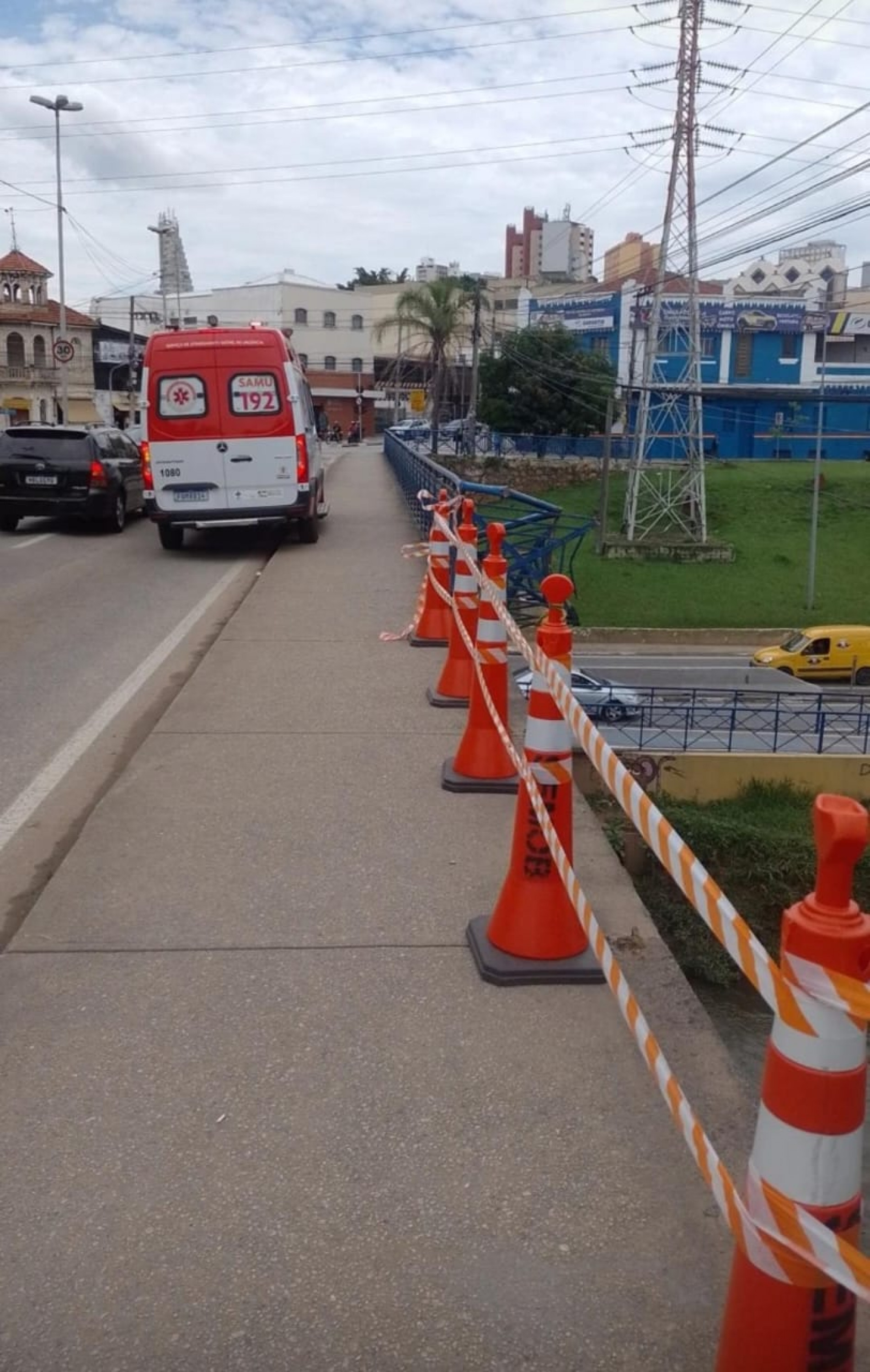 A grade de isolamento da ponte foi arrancada no momento da queda. Por isso, a equipe da Secretaria de Mobilidade (Semob) isolou a área com cones e faixas. (Da Redação)