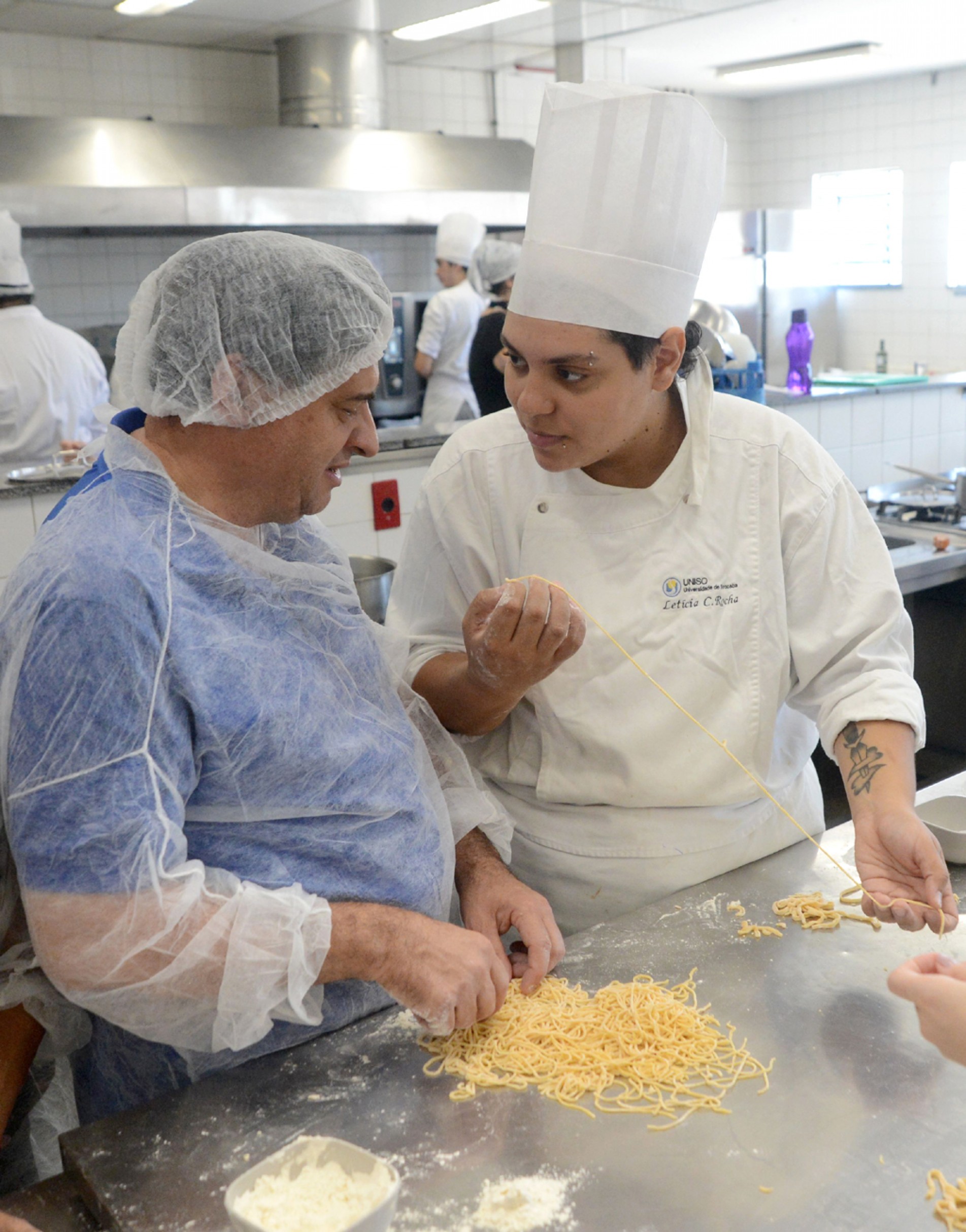 Alunos de gastronomia da Uniso ensinaram 19 assistidos da Asac a fazer macarrão e pão recheado