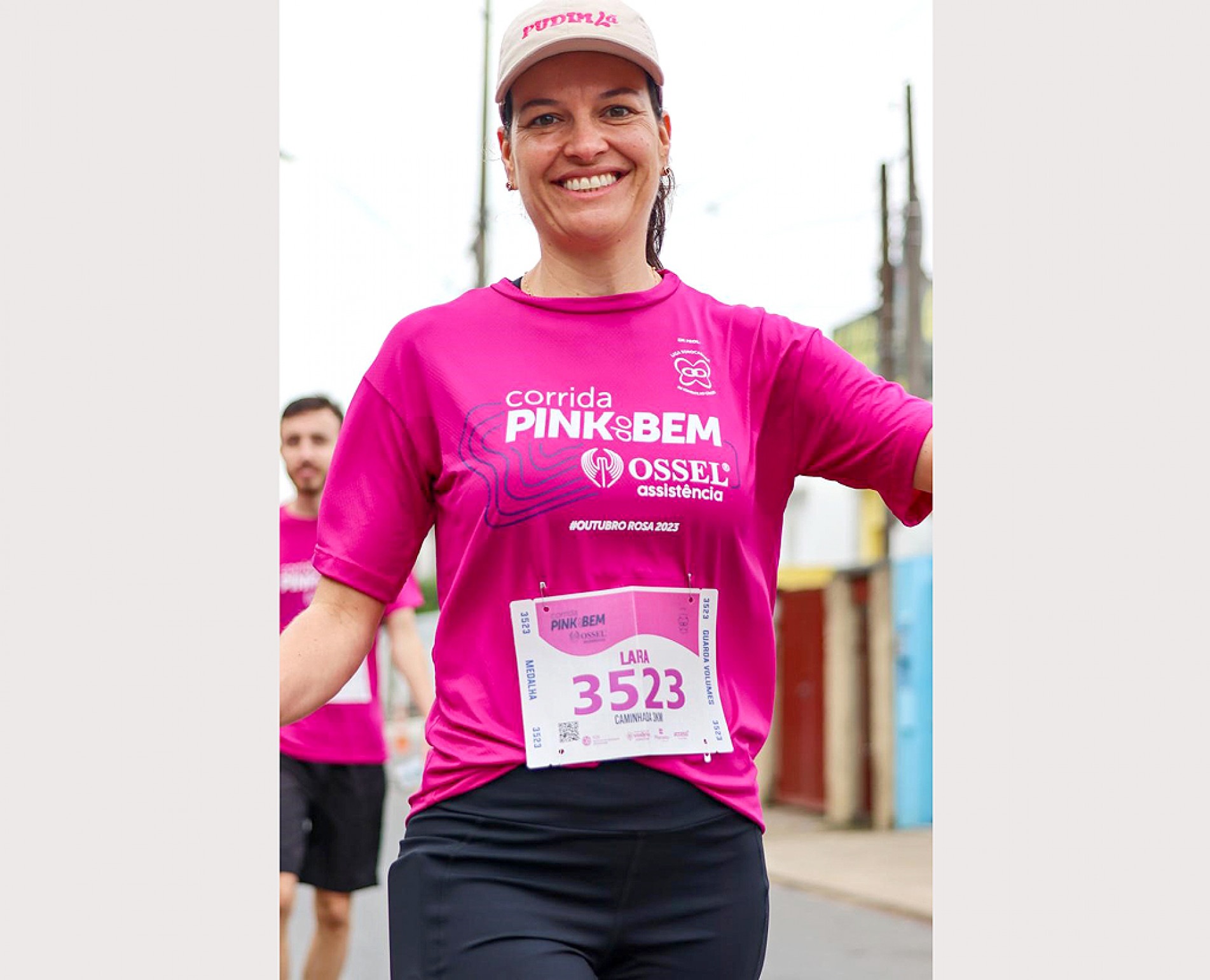 Em agosto, outra surpresa. Lara fez uma mamografia e descobriu um câncer de mama. Ela passou por cirurgia e a recuperação foi mais rápida do que ela esperava. “A corrida me ajudou muito. A corrida traz saúde, não só física, mas também mental, e isso me ajudou nesse processo, porque não é um processo fácil. Eu fiz a cirurgia no começo de outubro, precisei retirar uma mama, e tive um pós-operatório fantástico. Em 20, 30 dias, já estava fazendo caminhadas e, em 40 dias, eu já tinha voltado a correr”, declara Lara.