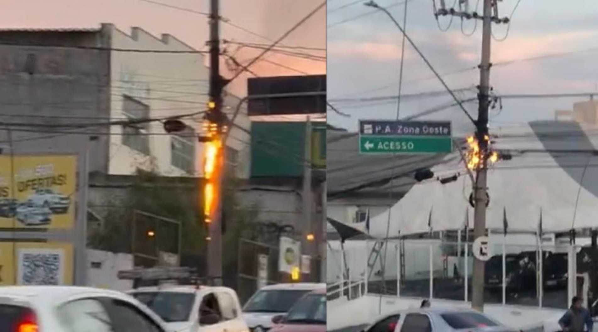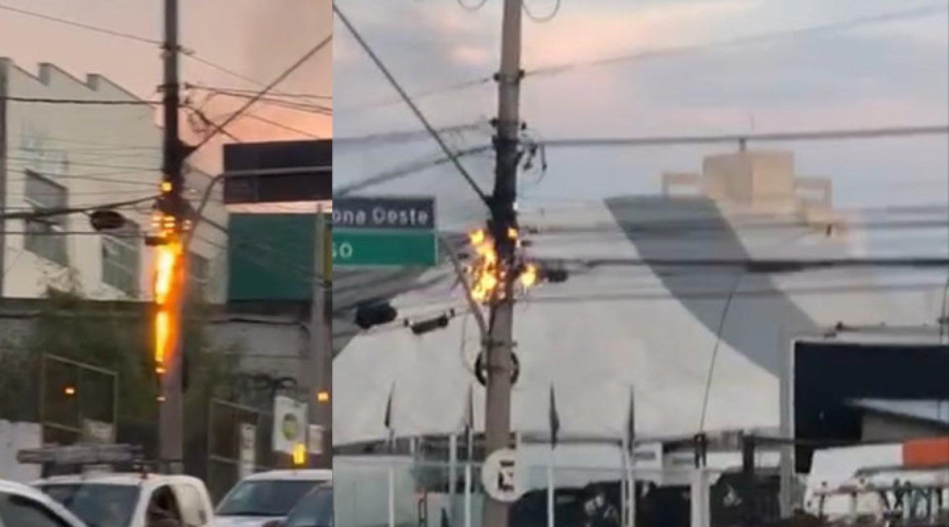 Um poste da rede de energia elétrica pegou fogo depois de um curto circuito que atingiu a fiação, na tarde de quinta-feira (11), na avenida General Carneiro em Sorocaba. Os pedestres e motoristas que passavam pelo local ficaram assustados com o clarão causado e com o fogo começando. Além disso, um dos fios se rompeu com o fogo e quase acertou um carro que passava no momento. Houve problema para o trânsito, porque os semáforos pararam de funcionar. A CPFL foi acionada e a energia foi restabelecida por volta das 20h.