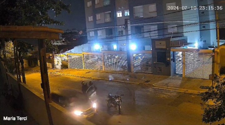 A câmera de segurança de uma casa próxima onde o carro estava parado, registrou toda a ação. Quando os suspeitos se aproximarem do carro com a motocicleta, um deles, que estava na garupa, desceu e abriu a porta do veículo, mandando o motorista sair. O outro suspeito que pilotava a moto, parou na frente para não deixar o motorista fugir. Em questão de segundos os suspeitos fogem com o veículo roubado do local.