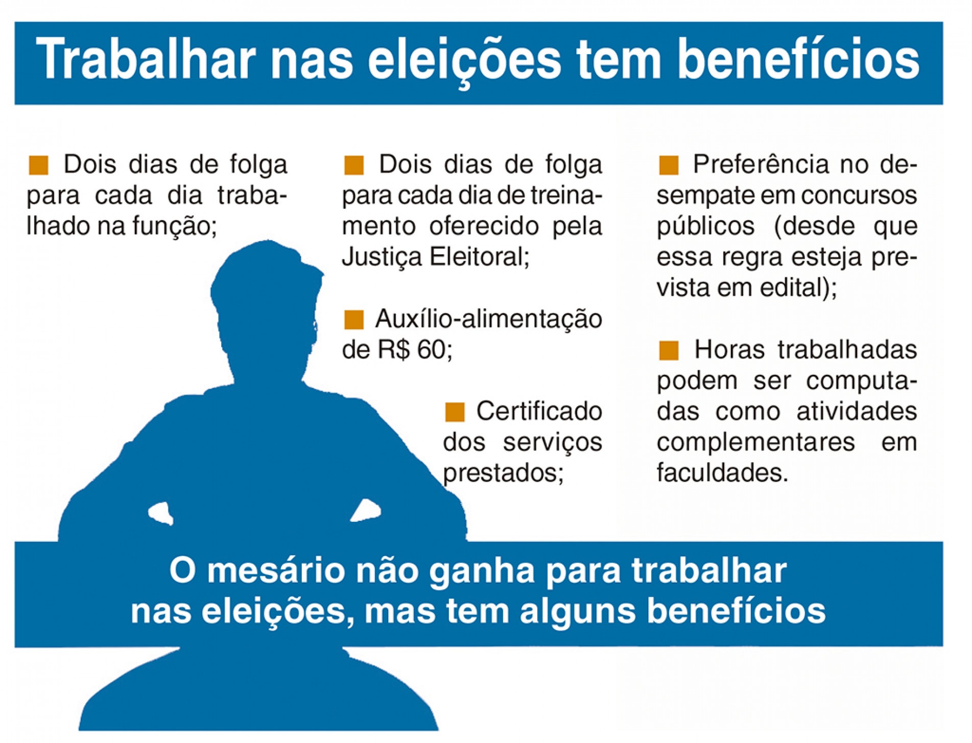 Mesários compõem as mesas receptoras de votos e de justificativas no dia da votação. Cada mesa é formada por quatro pessoas, com funções determinadas: presidente, primeiro e segundo mesários, além do secretário.