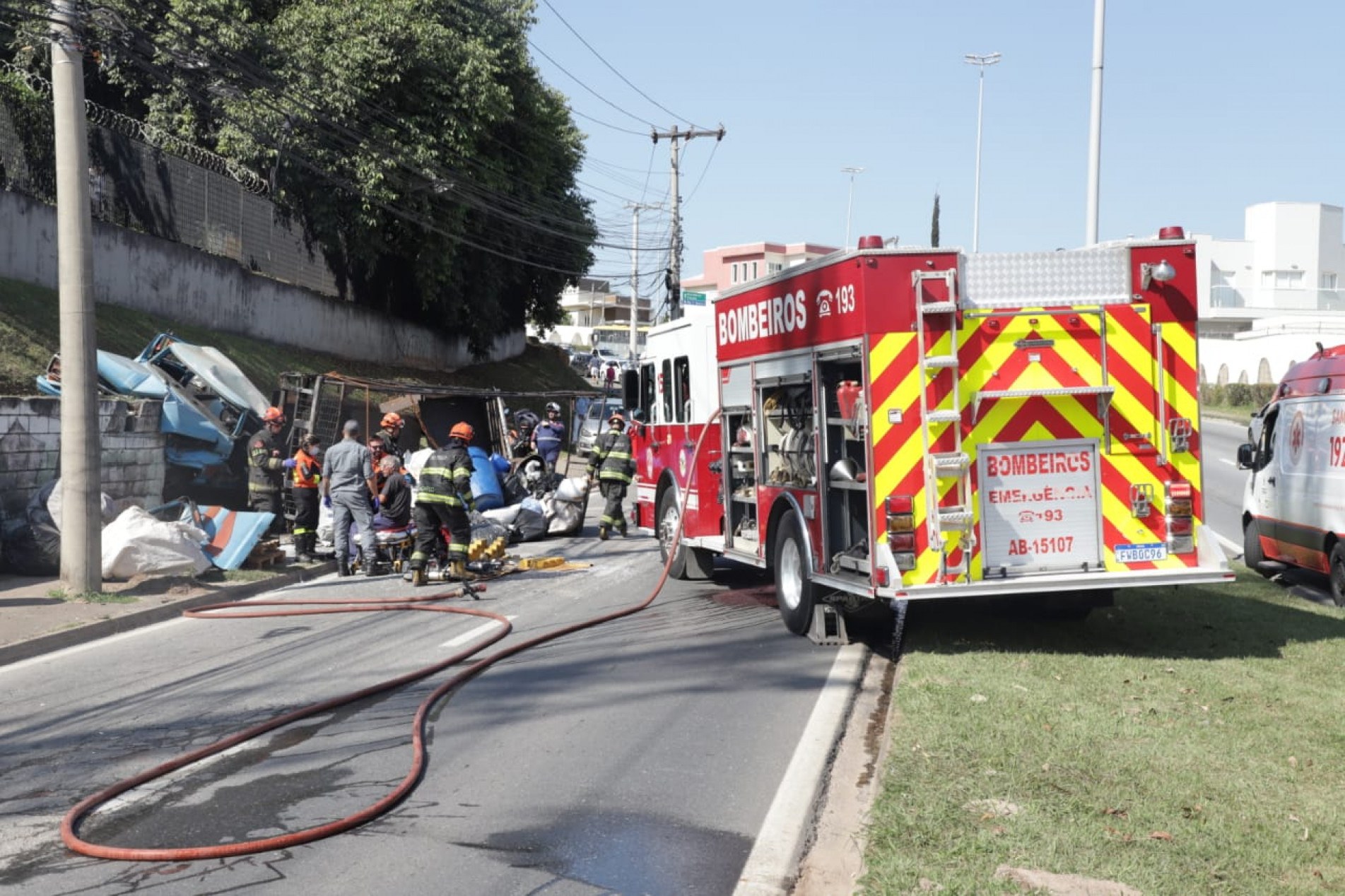 Populares tentaram retirar as duas vítimas, mas isso só foi possível com a chegada do Corpo de Bombeiros e do Serviço de Atendimento Móvel de Urgência (Samu). Mais de dez socorristas participaram do trabalho. A ação durou menos de dez minutos. Com ferramentas próprias, os bombeiros cortaram a lataria da cabine para retirar os ocupantes.