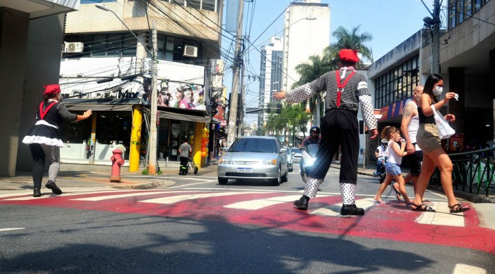 A primeira ação foi "Cruzamento Seguro - Pare, vai com calma!", em dois locais: no cruzamento da Avenida Moreira César com a Praça Nove de Julho e entre a avenida Afonso Vergueiro e a rua Amazonas. Quando o semáforo esteve fechado, na faixa de pedestres, ocorreu uma breve encenação por parte dos arte-educadores da Semob, mostrando uma faixa educativa, alertando os motoristas e motociclistas a respeito da sinalização de parada obrigatória.