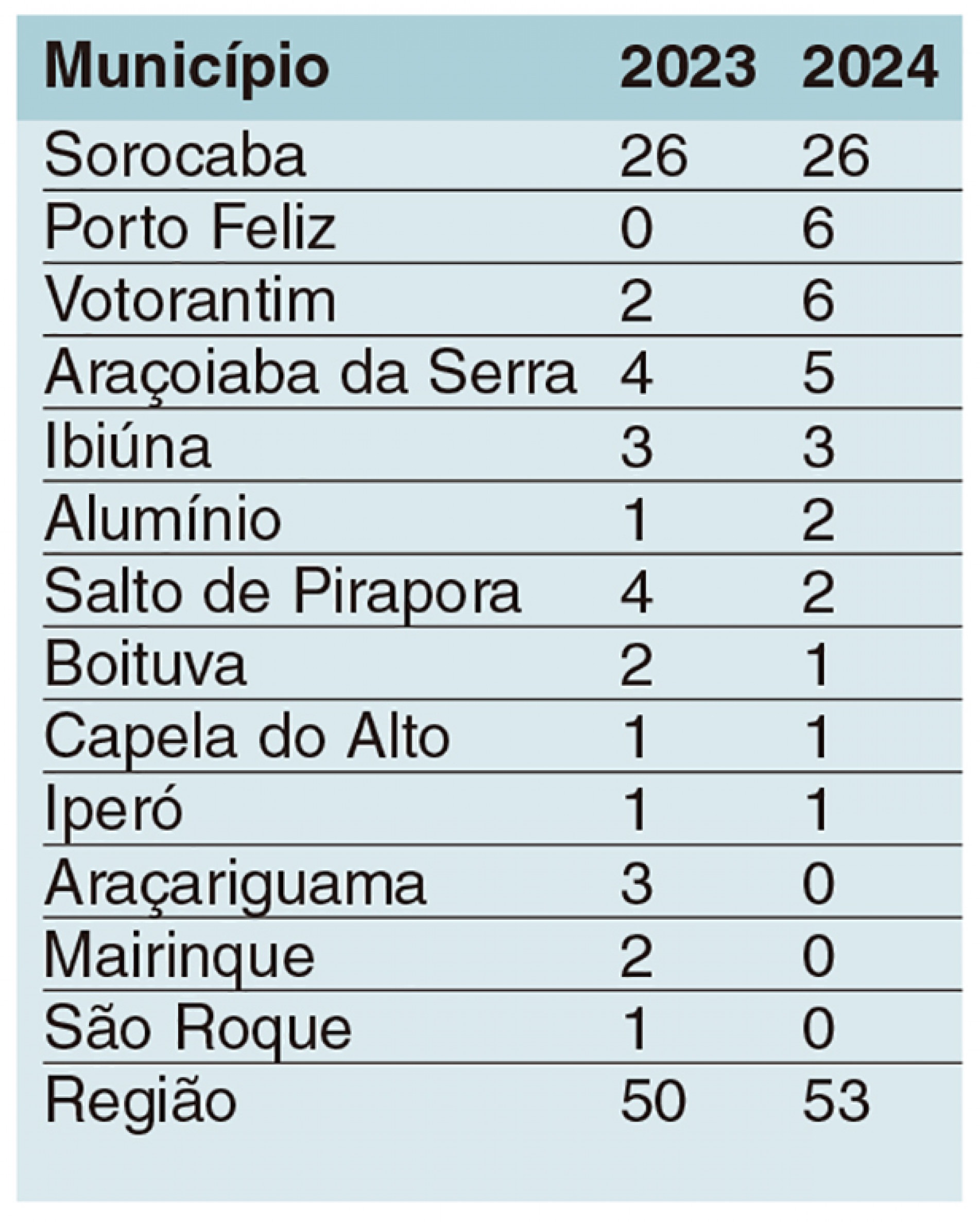 Foram identificadas 53 ocorrências de interrupção de energia na região de Sorocaba, entre janeiro e junho de 2024, segundo o levantamento realizado pela CPFL Piratininga. As cidades que lideram o ranking são: Sorocaba, Porto Feliz e Votorantim. O número total de casos é 6% superior à quantidade de ocorrências registradas durante o primeiro semestre de 2023, quando foram computados 50 casos. Confira, no quadro, as ocorrência registradas na RMS no primeiro semestre de 2023 e no mesmo período deste ano:
