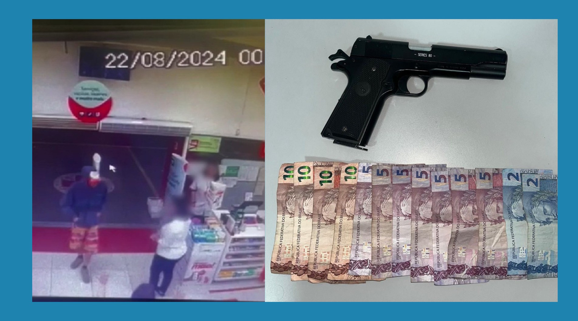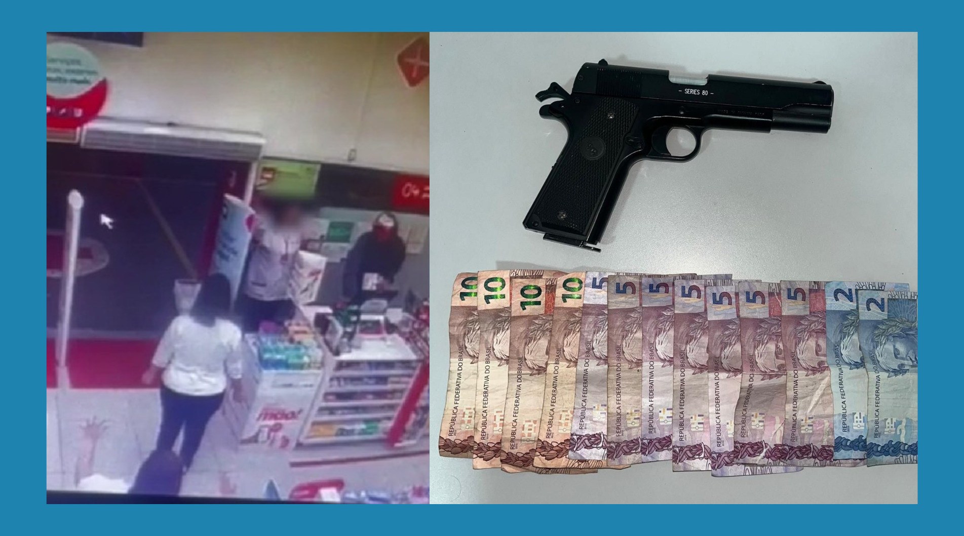 A Polícia Militar foi acionada e o homem foi detido com uma réplica de arma de fogo e com R$ 79,00 em dinheiro.
