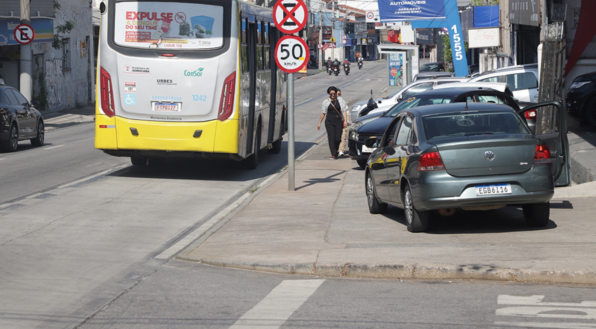 Lojas de carros na rua Comendador Oetterer, na Vila Carvalho — zona norte de Sorocaba —, usam as calçadas para expor os modelos que estão à venda. A prática deixa pouco espaço para os pedestres, que, muitas vezes, acabam tendo de caminhar pelo meio-fio ou até pelo asfalto, expondo-os a atropelamentos. Os riscos são maiores ainda porque a via recebe intenso movimento de veículos, além de ter uma das faixas reservada ao sistema BRT. Após receber reclamação de um leitor, a reportagem do Cruzeiro do Sul esteve no local e confirmou a situação.