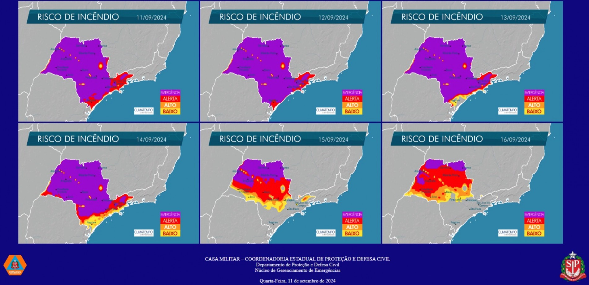 A Defesa Civil do Estado por meio do Centro de Gerenciamento de Emergências (CGE), renovou até o próximo sábado (14), o alerta de risco elevado para incêndios para todo o Estado.