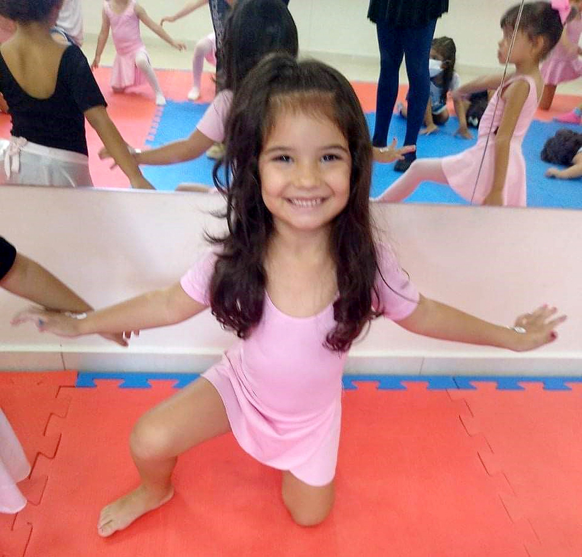 “Eu já aprendi alguns giros também, mas o mais legal é o espacate”, conta a pequena. “No começo era difícil, minha perna doía. Aos poucos e com muito alongamento, a professora Hilda me ensinou e me motivava a tentar a cada aula, assim eu consegui fazer o movimento”.