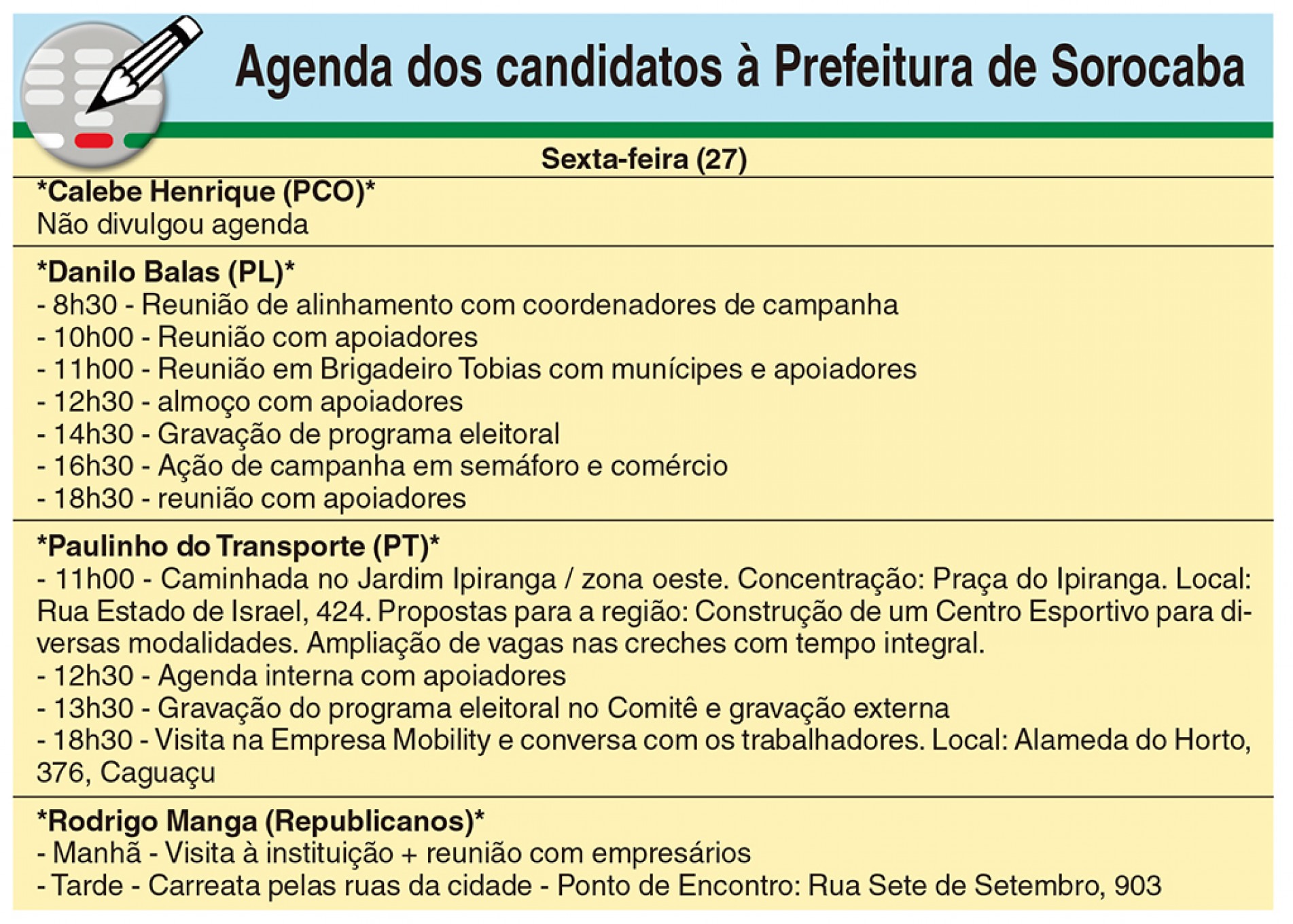 Eleições 2024 Agenda dos candidatos à Prefeitura de Sorocaba 26 de Setembro de 2024 às 22:03 Cruzeiro do Sul [email protected] . (Crédito: .)