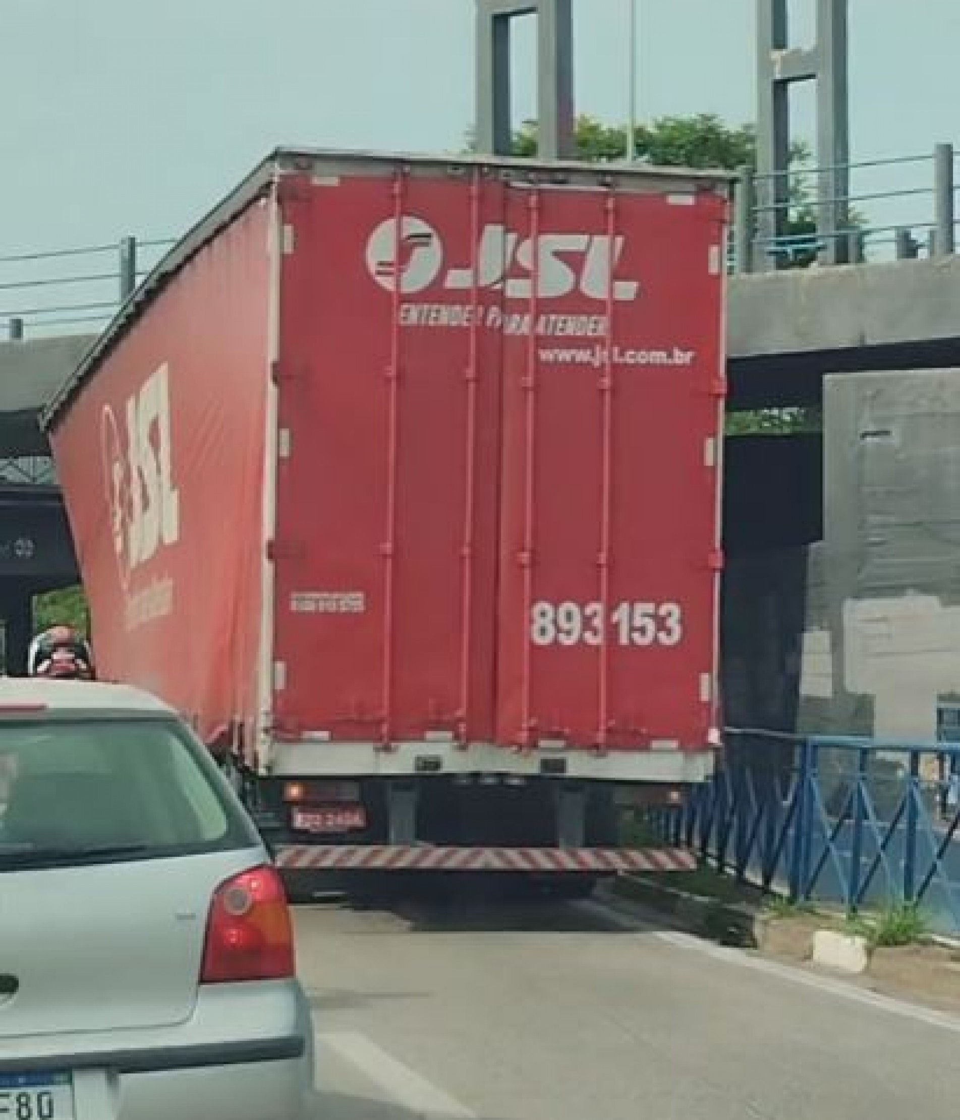 Conforme apurado no local pela reportagem, o condutor usou o GPS, que não acionou alerta para tal. A altura máxima permitida é de 4,3m, enquanto o baú do caminhão tinha 4,7m. Com a batida, o trânsito seguiu apenas por uma faixa, gerando lentidão.