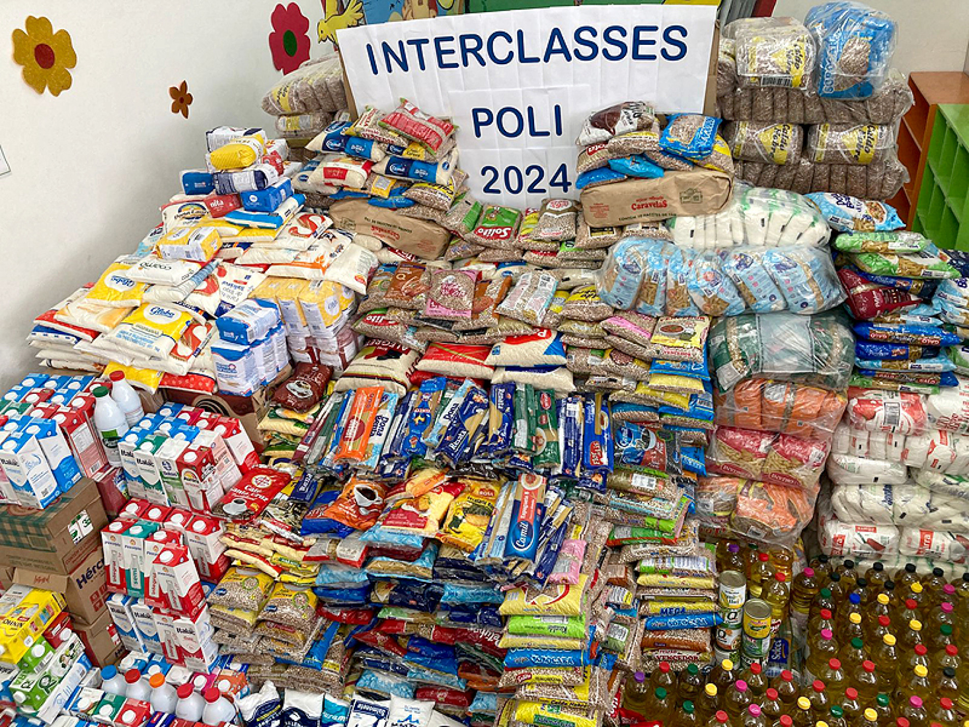 Para entrar no ritmo competitivo do Interclasse, a arrecadação de alimentos também valeu pontos. Cada classe representava um país e a quantidade era revertida em pontos. Neste ano, pela segunda vez consecutiva, os alunos do