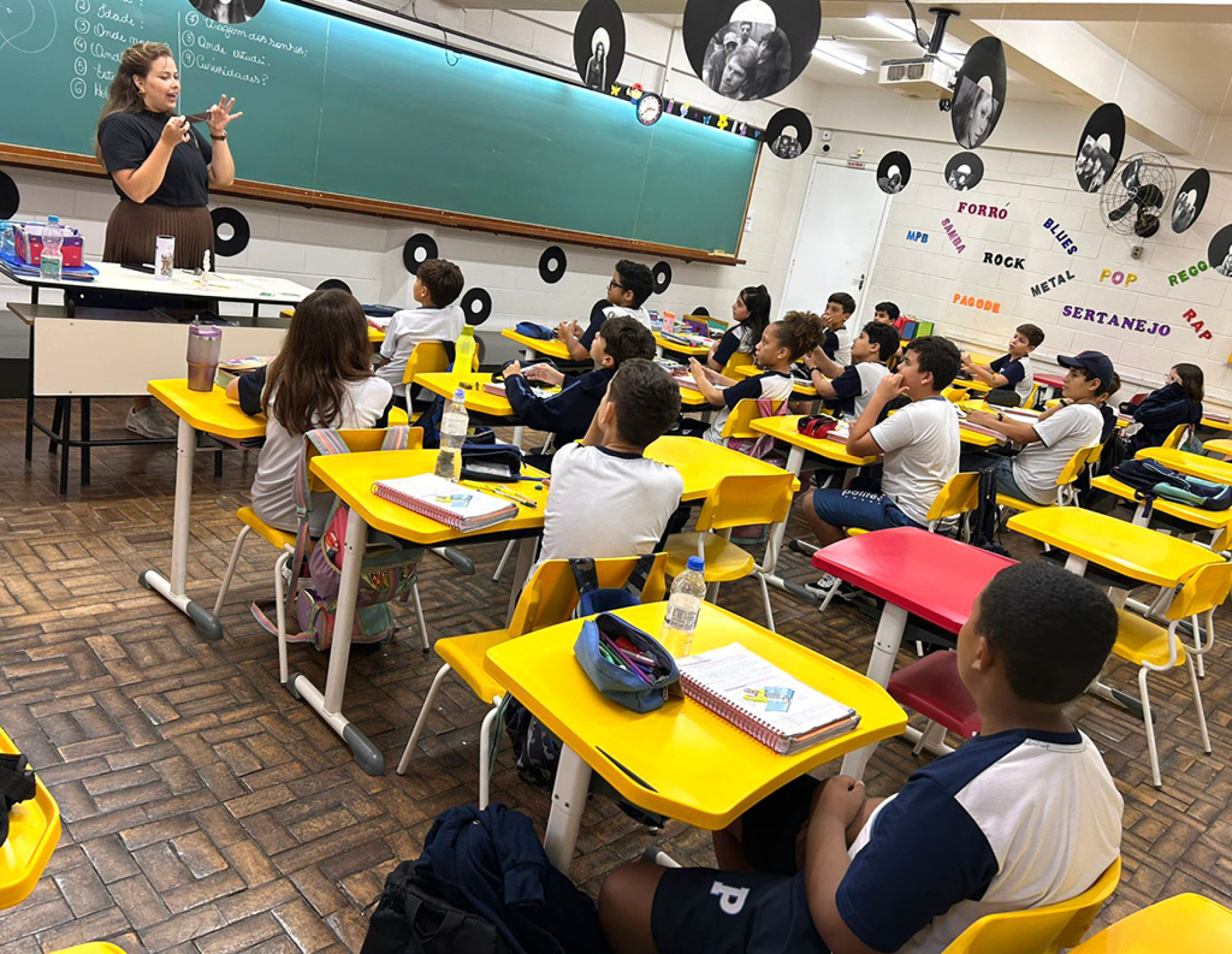 1. Orientação sobre a rotina do Ensino Fundamental II: as turmas do 5º ano recebem informações sobre como é a dinâmica do 6º ano, incluindo o funcionamento das aulas por disciplina e as mudanças nas regras e horários.