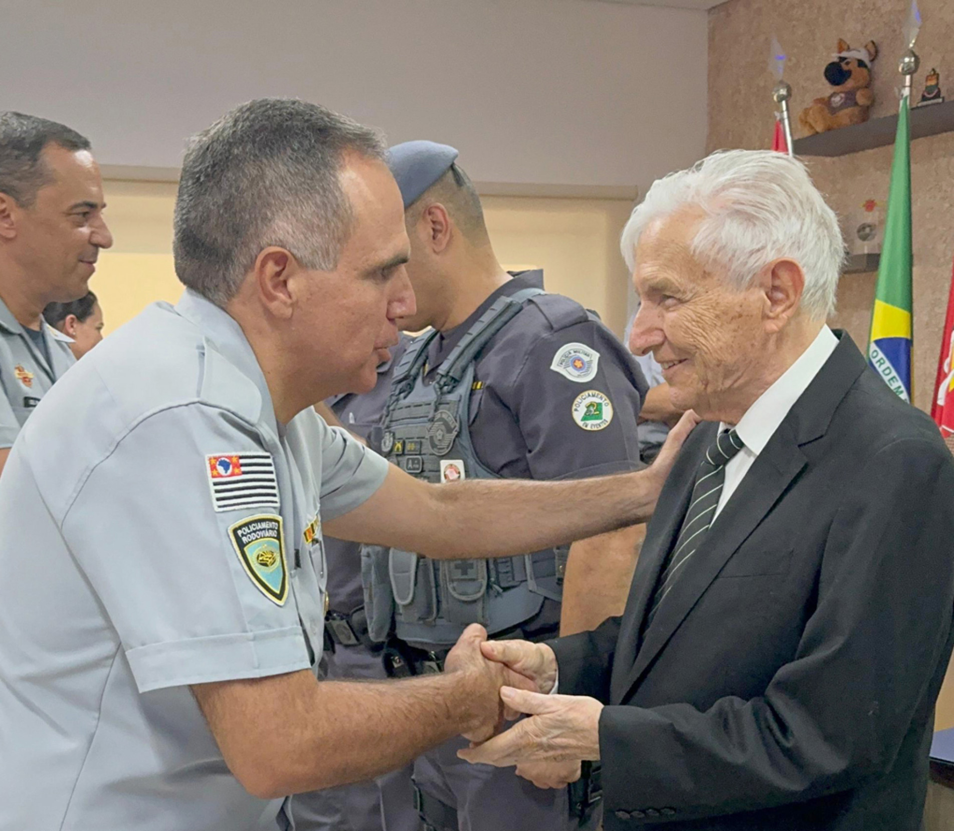 A homenagem a Laelso Rodrigues foi um dos momentos marcantes da cerimônia. Em discurso de agradecimento, o coronel PM Hugo Araújo Santos ressaltou a importância da parceria entre a Fundação Ubaldino do Amaral (FUA) com o BPRv. “O trabalho realizado pelo 5º BPRv é essencial não apenas para nossa região, mas para o Estado como um todo. Tenho orgulho de contribuir, ainda que de forma modesta, para o sucesso dessa missão tão nobre”, declarou. Laelso Rodrigues é membro da Diretoria Executiva da FUA, mantenedora do jornal Cruzeiro do Sul. (João Frizo - programa de estágio)