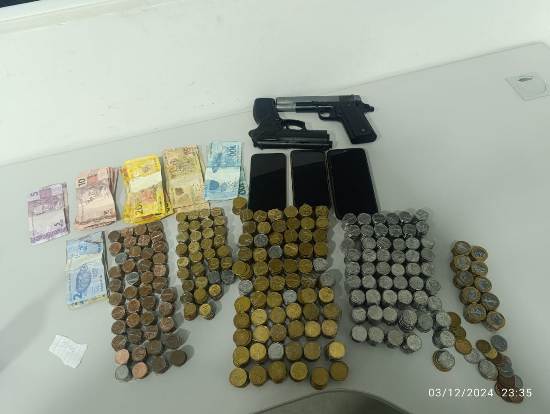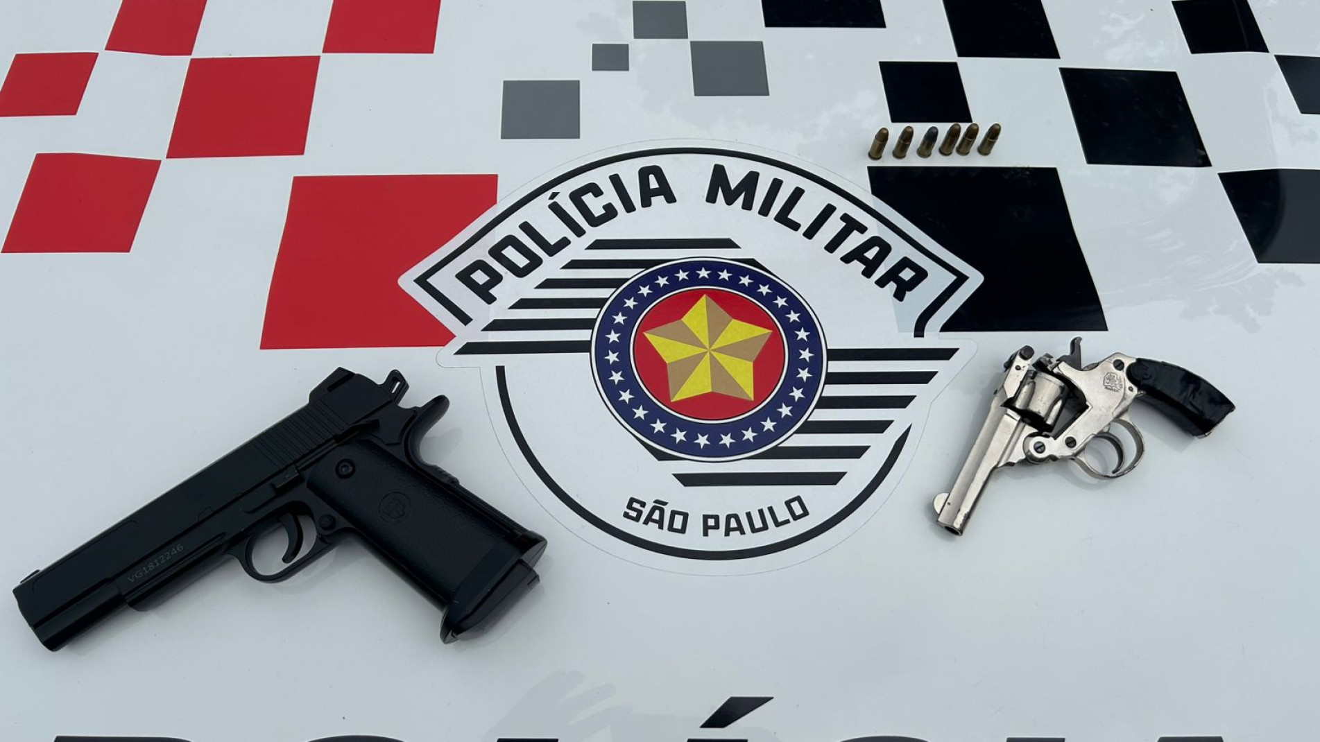 No local, além do acusado, cuja identidade não foi revelada, os policiais encontraram uma arma de fogo calibre .32, com seis munições intactas, e uma réplica de arma de fogo.