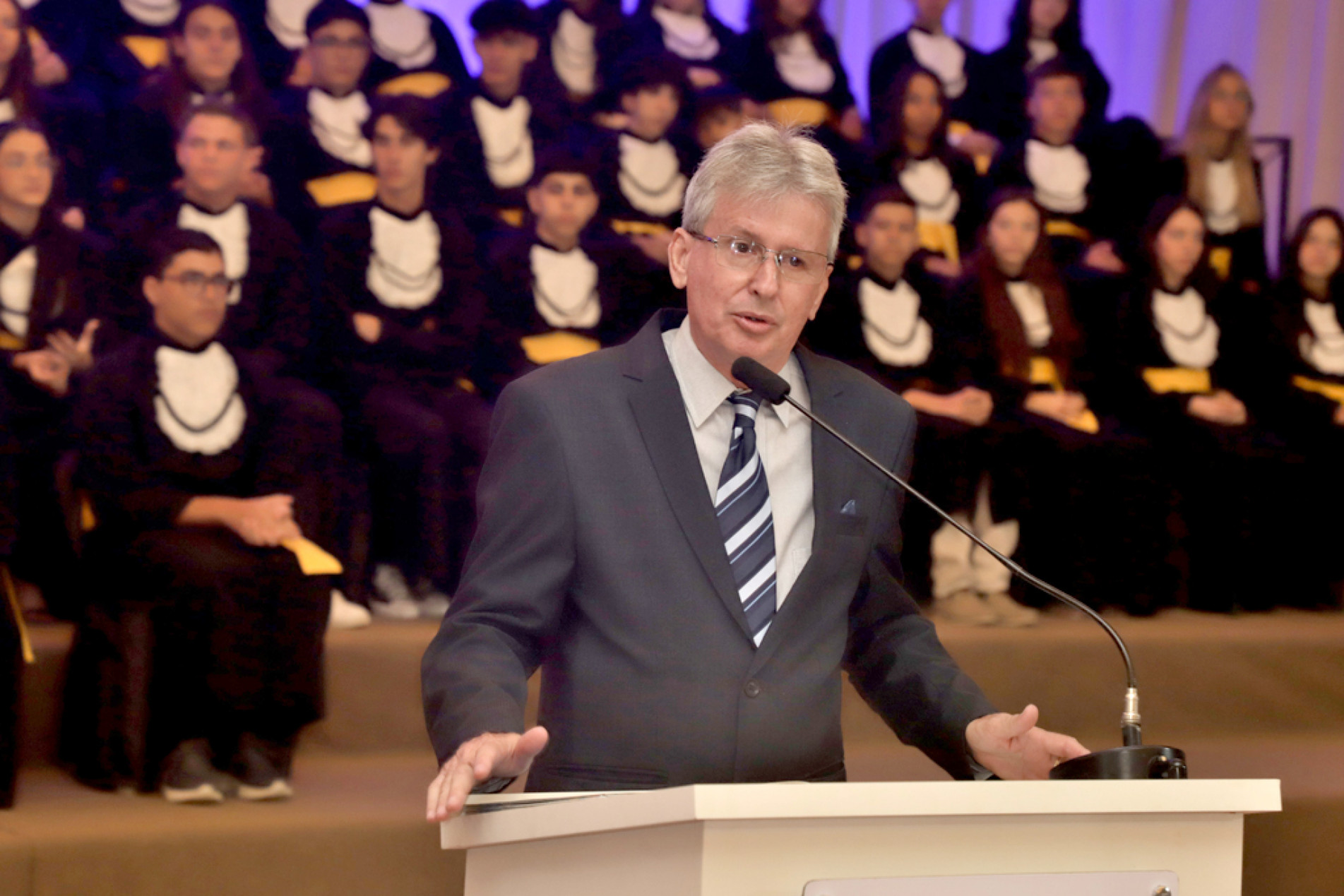 “São datas especiais para a Fundação Ubaldino do Amaral, a formatura de alunos do Fundamental I, Fundamental II e Ensino Médio. Em seus 60 anos, a Fundação Ubaldino do Amaral preserva, desde o princípio, seus objetivos: educação, família e fraternidade. Nesses dias de formatura, estive presente nas três ocasiões, nas quais todos puderam presenciar a fraternidade entre famílias e amigos, e o resultado do ensino praticado no Poli, de excelência, alunos preparados para as novas etapas de suas vidas, alguns seguem junto ao Politécnico com o novo material PH, os formandos do ensino médio, preparados para novos desafios de suas escolhas! Agradecemos a confiança depositada pelas famílias ao ensino do Poli, a dedicação dos alunos e toda equipe educacional. Ficamos felizes e agraciados por contribuir com essa etapa vencida de cada formando. Parabéns a todos!”, enfatiza Hélio Sola Aro, presidente da Diretoria Executiva da Fundação Ubaldino do Amaral (FUA).