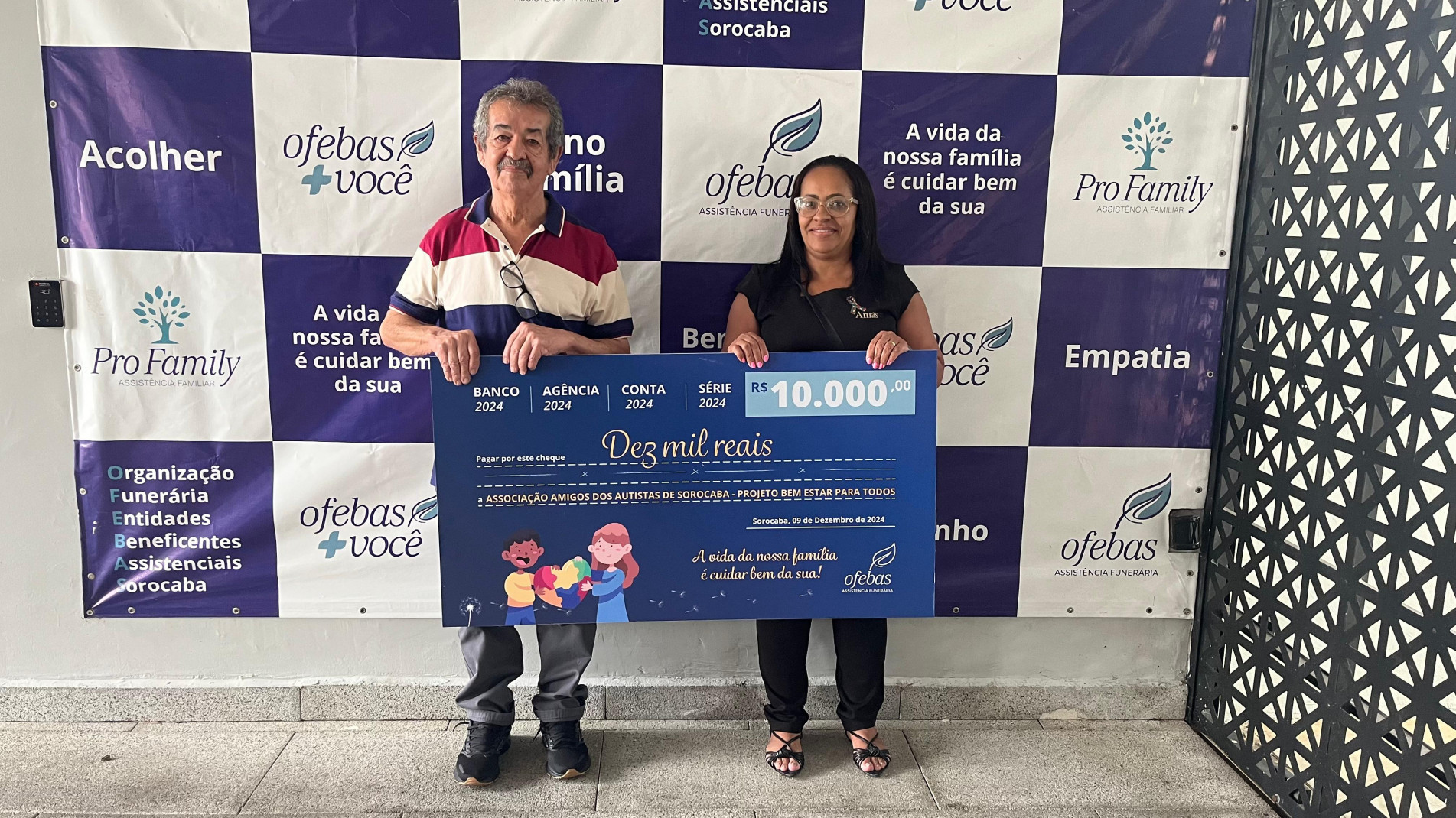 Como conclusão de mais uma edição do Assessoramento Técnico 2024, a Organização Funerária das Entidades Beneficentes e Assistenciais de Sorocaba (Ofebas) contemplou três entidades com um aporte financeiro de R$ 10 mil cada: Associação Amigos dos Autistas de Sorocaba (AMAS), Lar Casa Bela e Instituto Gold. O investimento social visa auxiliar as entidades na execução de projetos para melhorar a assistência oferecida à sociedade.