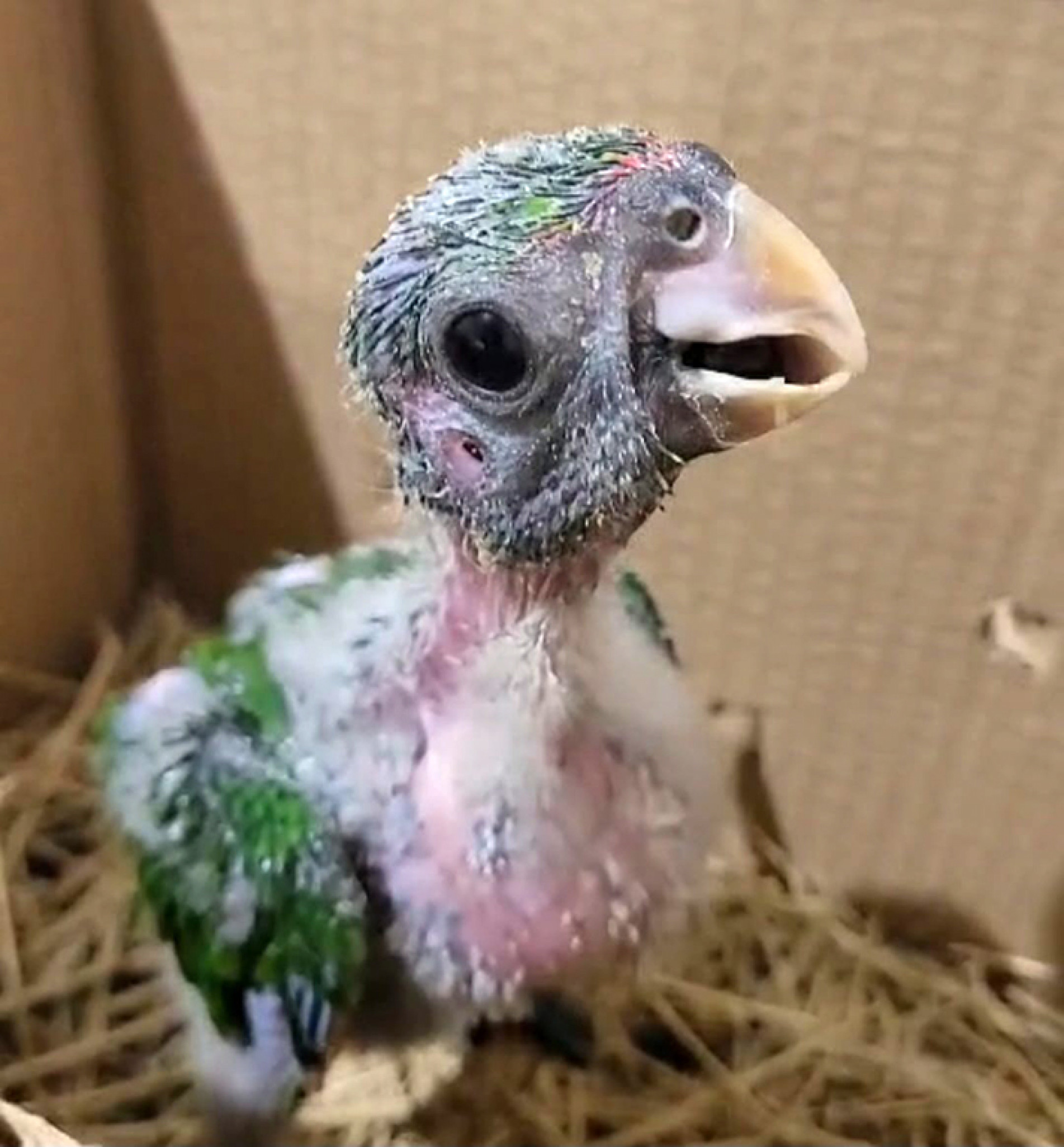 Desde seu nascimento, está sendo alimentado e cuidado pela equipe do Quinzinho de Barros. A papinha, específica para filhotes de papagaios, é oferecida de cinco a seis vezes ao dia. Além disso, a ave é pesada todas as manhãs, a fim de acompanhar seu desenvolvimento. O filhote permanece no Setor Veterinário devido à necessidade de cuidados intensivos, por isso ainda não pode ser visto pelo público.