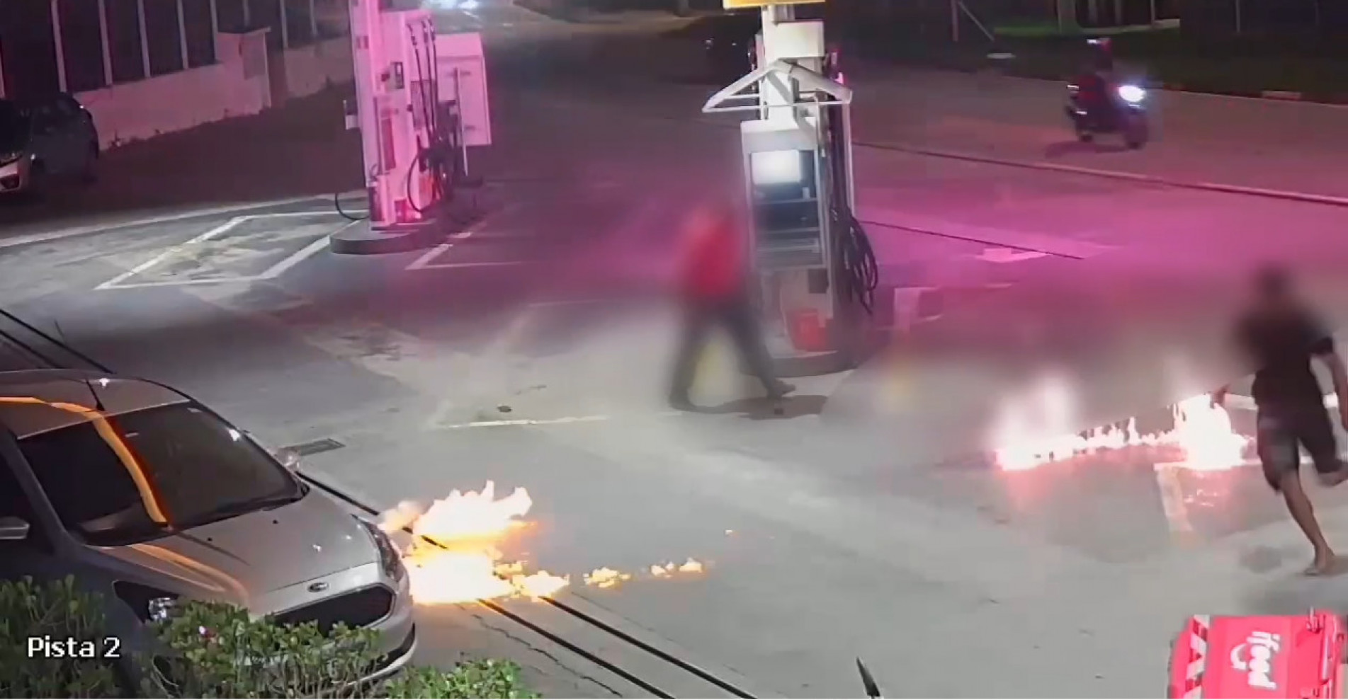 Nas câmeras de segunraça, as quais a reportagem teve acesso, é possível ver que os próprios frentistas conseguiram controlar as chamas rapidamente com o extintor, evitando que se espalhassem. O suspeito, apesar de ter fugido do local, foi localizado pelos policiais militares e confessou o crime.
