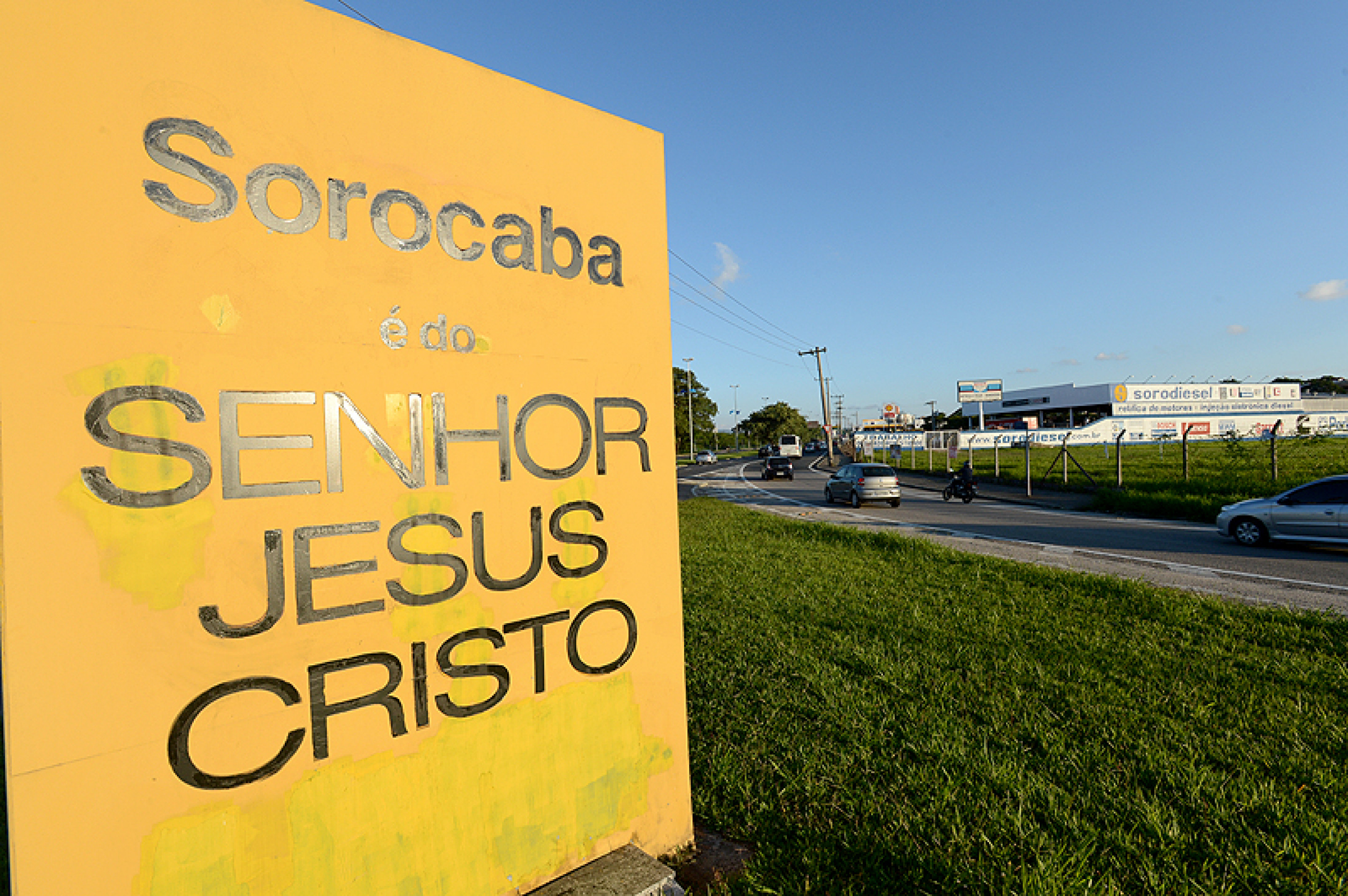 Sorocaba é conhecida por uma placa icônica em uma das principais entradas da cidade. Quem chega pela rodovia José Ermírio de Moraes (Castelinho), acessando a avenida Dom Aguirre, pode ler a frase “Sorocaba é do Senhor Jesus Cristo”. Instalada em 2006, a placa foi diversas vezes alvo de vandalismo, manifestações, ordem de retirada, polêmicas e memes, mas se mantém até hoje onde foi instalada inicialmente. (Tom Rocha)