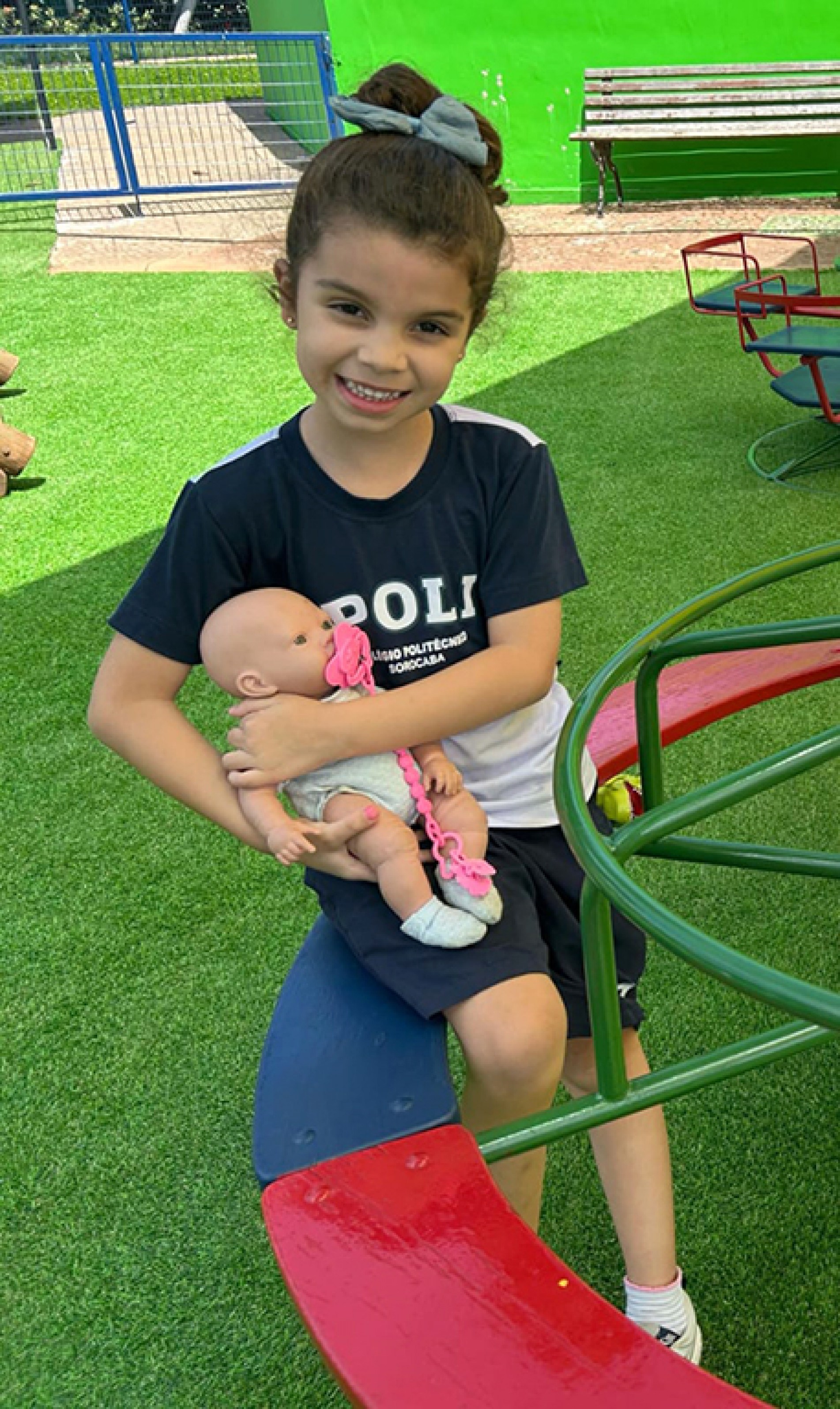 “Minha filha, com 5 anos, tem muita energia e ama brincar ao ar livre. É impressionante ver como ela se diverte, seja correndo, pulando corda ou explorando o jardim e brincando na terra. Eu sempre percebo o quanto essas atividades são importantes para o desenvolvimento dela, não só fisicamente, mas também mentalmente. Quando ela está ao ar livre, é como se tivesse a liberdade para ser criativa, experimentar coisas novas e, ao mesmo tempo, aprender sobre o mundo ao seu redor. Além disso, vejo como brincar fora de casa ajuda a desenvolver a socialização dela, principalmente quando está com outras crianças. Elas interagem de forma espontânea e criam histórias juntas, o que é ótimo para a imaginação. Eu acredito muito que a natureza tem um papel essencial nisso, é mais do que só diversão, é um ambiente onde ela aprende a lidar com diferentes estímulos e até com seus próprios limites”, Juliany Thaila Santos Ramos de Souza, mãe da aluna Aurora Ramos Melchior.