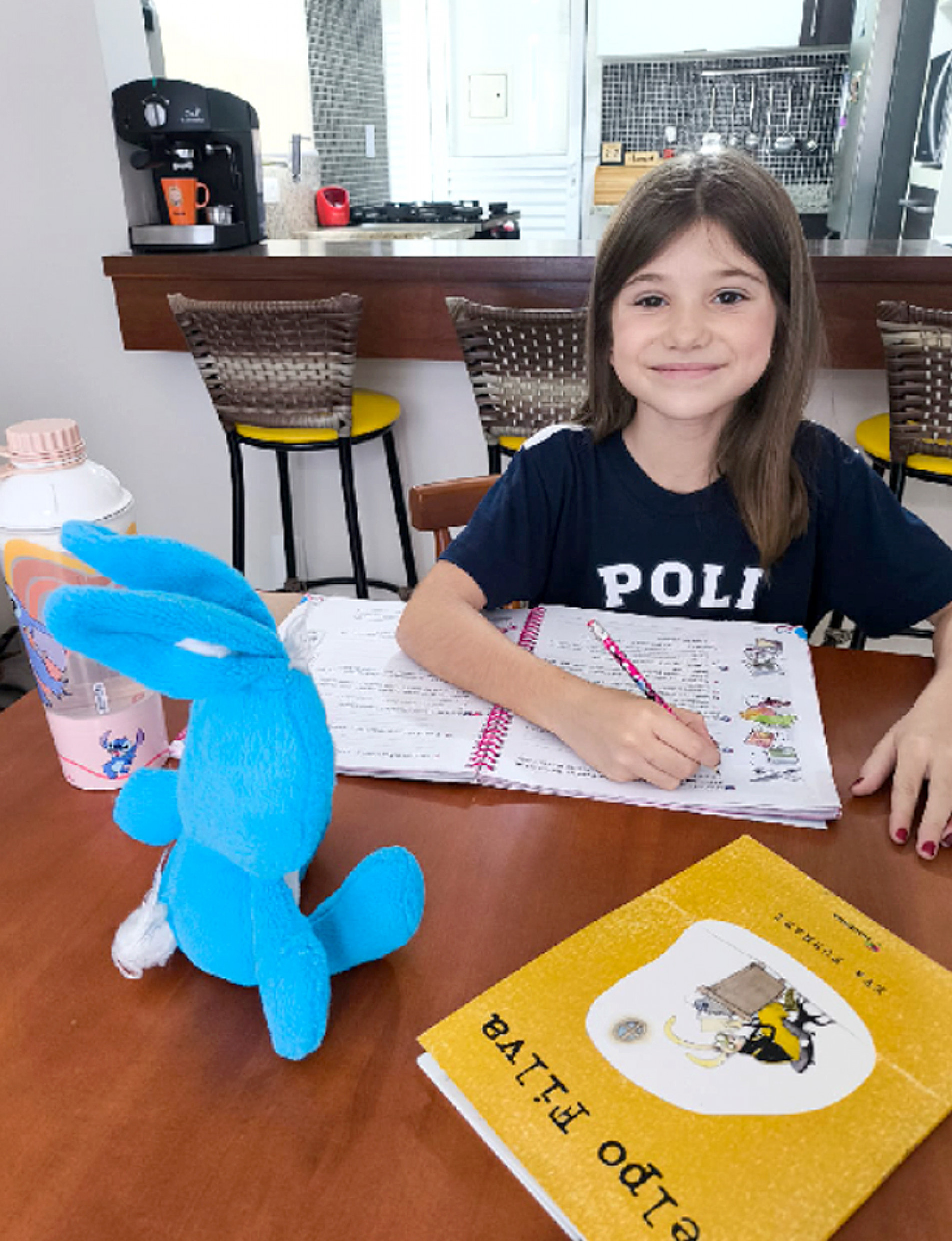 Helena Morin ficou muito feliz em participar do projeto e adorou a leitura do livro. “O livro é muito legal, contou curiosidades sobre Felpo ser um coelho solitário, tinha uma orelha maior que a outra e usou aparelho”, comenta Helena.