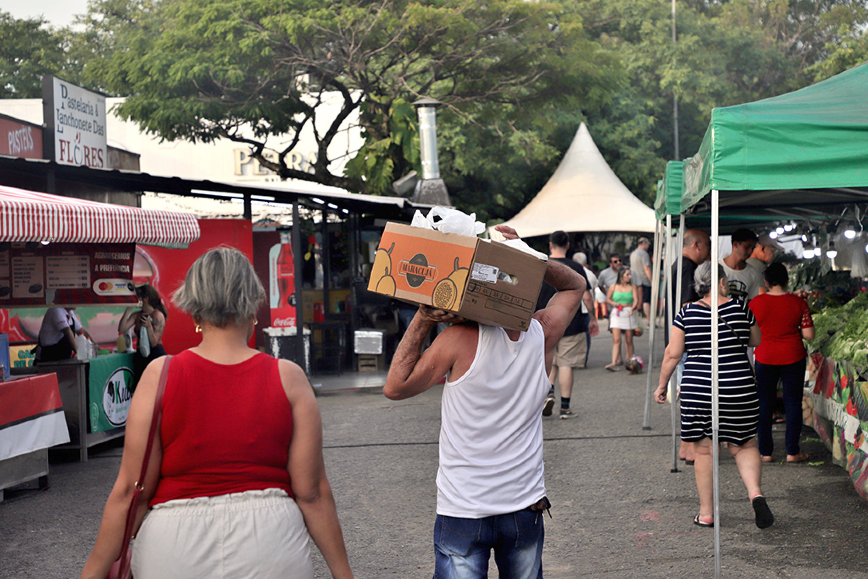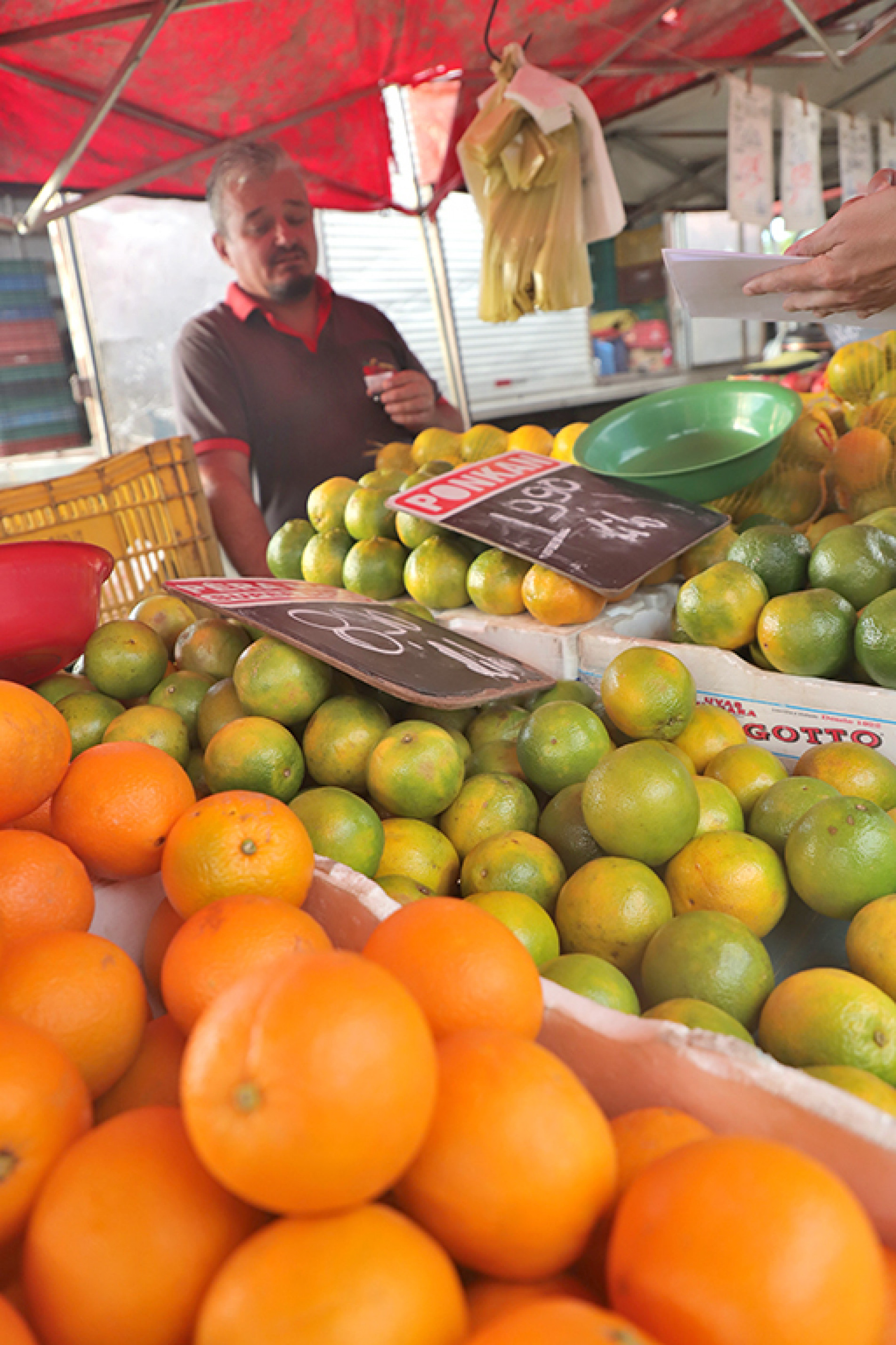 César Dias, 54 anos, feirante no local desde 1992, confirma a boa saída da laranja pera. “Ela dá o ano inteiro, é a melhor fruta, com o suco mais saboroso. O público gosta muito e leva mesmo”, afirma, mesmo apontando um aumento de preço na fruta, o que não impede os clientes de levarem a fruta. Ele também afirma que legumes têm uma saída ótima no varejão, que é um dos destaques da feira.