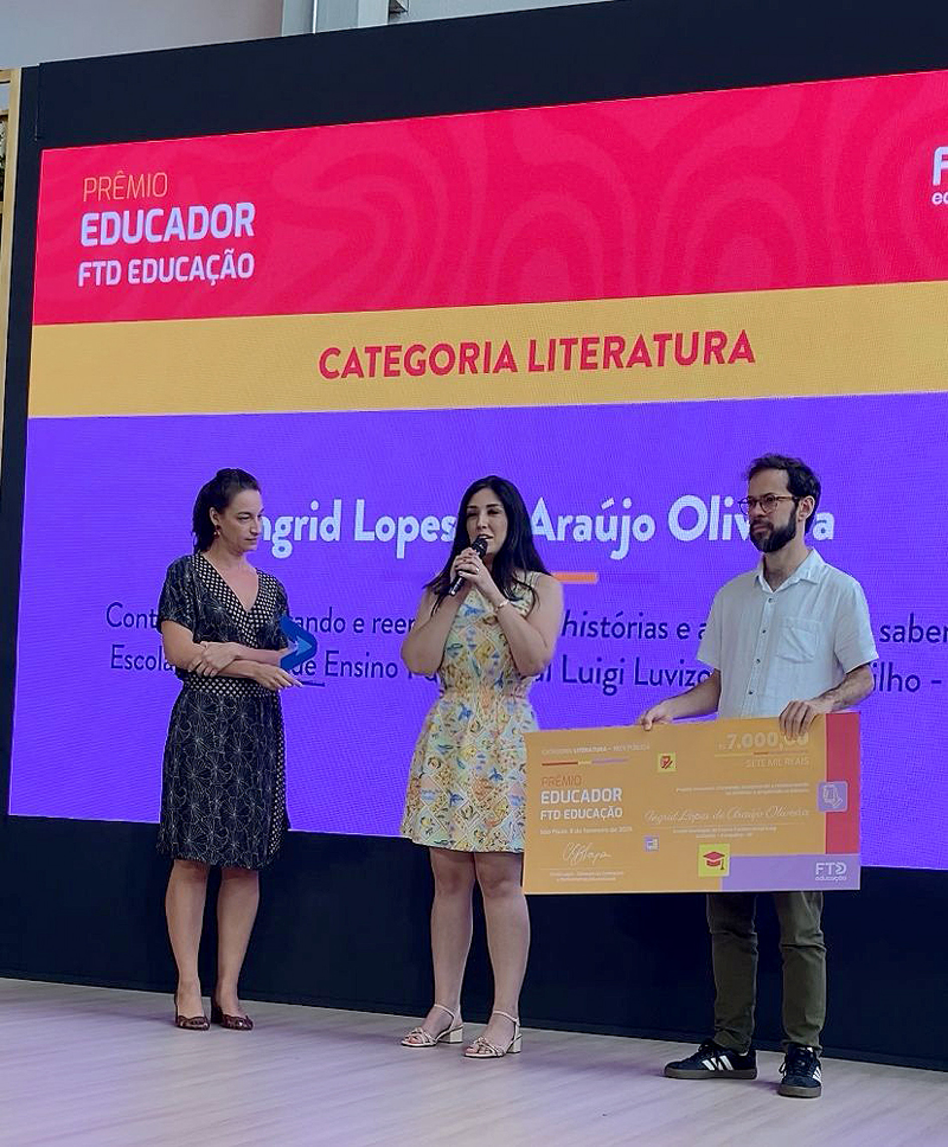 O protagonismo infantil e a formação de leitores foram os pilares do projeto “Contando, encantando e reencantando as histórias e ampliando os saberes”, desenvolvido pela professora Ingrid Lopes de Araújo Oliveira na Escola Municipal Luigi Luvizotto, em Cerquilho, na Região Metropolitana de Sorocaba (RMS). A iniciativa envolveu alunos do 1º ano do ensino fundamental e foi a vencedora do Prêmio Educador FTD Educação 2024 na categoria Literatura. O projeto, implementado em 2023 e 2024, levou o Prêmio Destaque e a professora foi contemplada com uma viagem pedagógica internacional.