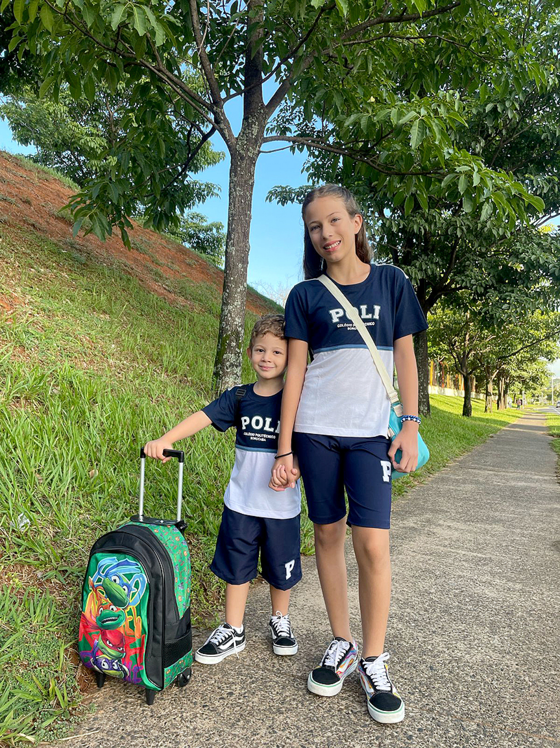 “Com a Maísa de 10 anos, percebemos nela uma empatia fora do comum, como sentir a dor de um coleguinha que passou por uma situação triste, por exemplo. Em casa prezamos muito por isso, mas acredito que os professores do Poli colaboram bastante nessa parte. Outras habilidades, como se comunicar de forma mais assertiva e resolução de problemas também vem se desenvolvendo na Maísa. Já o Daniel ingressou este ano de 2025 no ambiente escolar. Ele tem 4 anos e já percebemos uma grande melhora em seu comportamento quando está com outras crianças fora da escola. Acreditamos que as atividades realizadas no ensino infantil colaboraram bastante para o desenvolvimento social do Daniel, seja através de jogos ou atividades em grupo com os coleguinhas, o estabelecimento de novas amizades, as brincadeiras juntos, aprendem a dividir brinquedos e compartilhar materiais, por exemplo através da mediação dos professores num possível conflito, atuando como mediadores e ensinando a resolver se comunicando ou negociando”, finalizou Flávia.