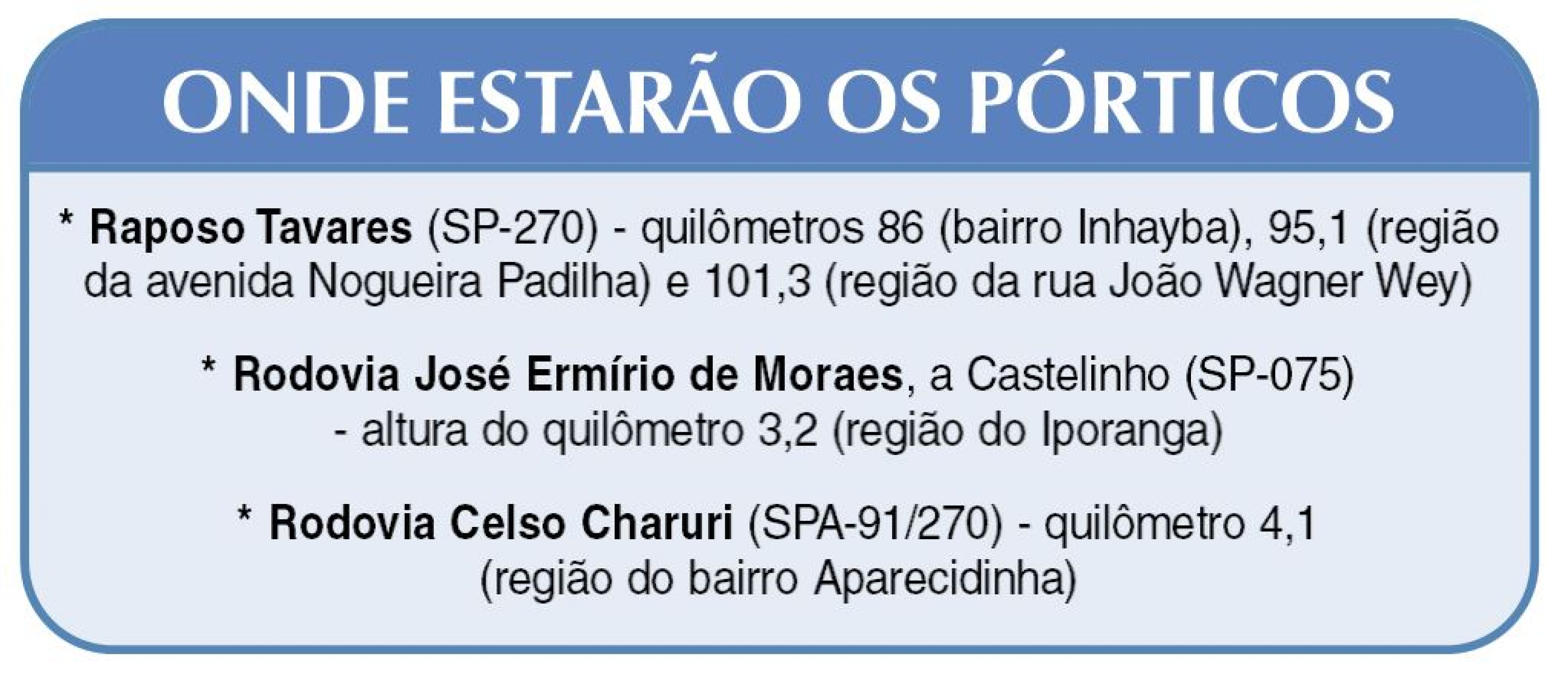 Para quem não tem sistema tag, os pórticos farão a captura das placas dos veículos. Em um site (ainda a ser lançado) do Estado, o motorista poderá obter a conta do pedágio e realizar o pagamento em até 60 dias.