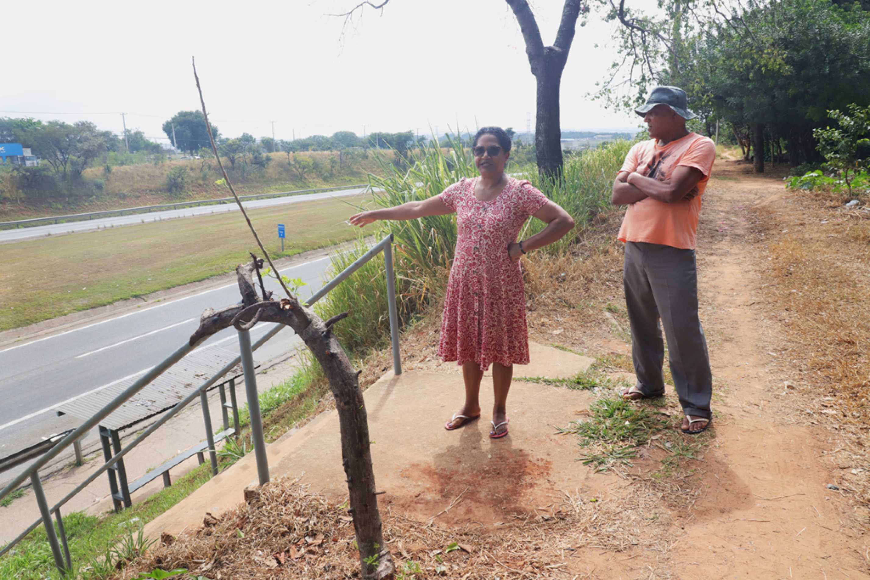 “Sempre foi assim, desse jeito que você está vendo, essa precariedade”, diz Maria Lúcia. “E temos a questão de acidentes. Acontecem muitos, infelizmente. Veja, as pessoas têm que atravessar essa rodovia, nas duas pistas. Tem gente que não é jovem e ágil. É perigoso”, lamenta a dona de casa. Alcides chama a atenção para uma série de conversas que moradores do bairro já tiveram com autoridades públicas, como vereadores, a respeito de uma passarela no local, sem sucesso.