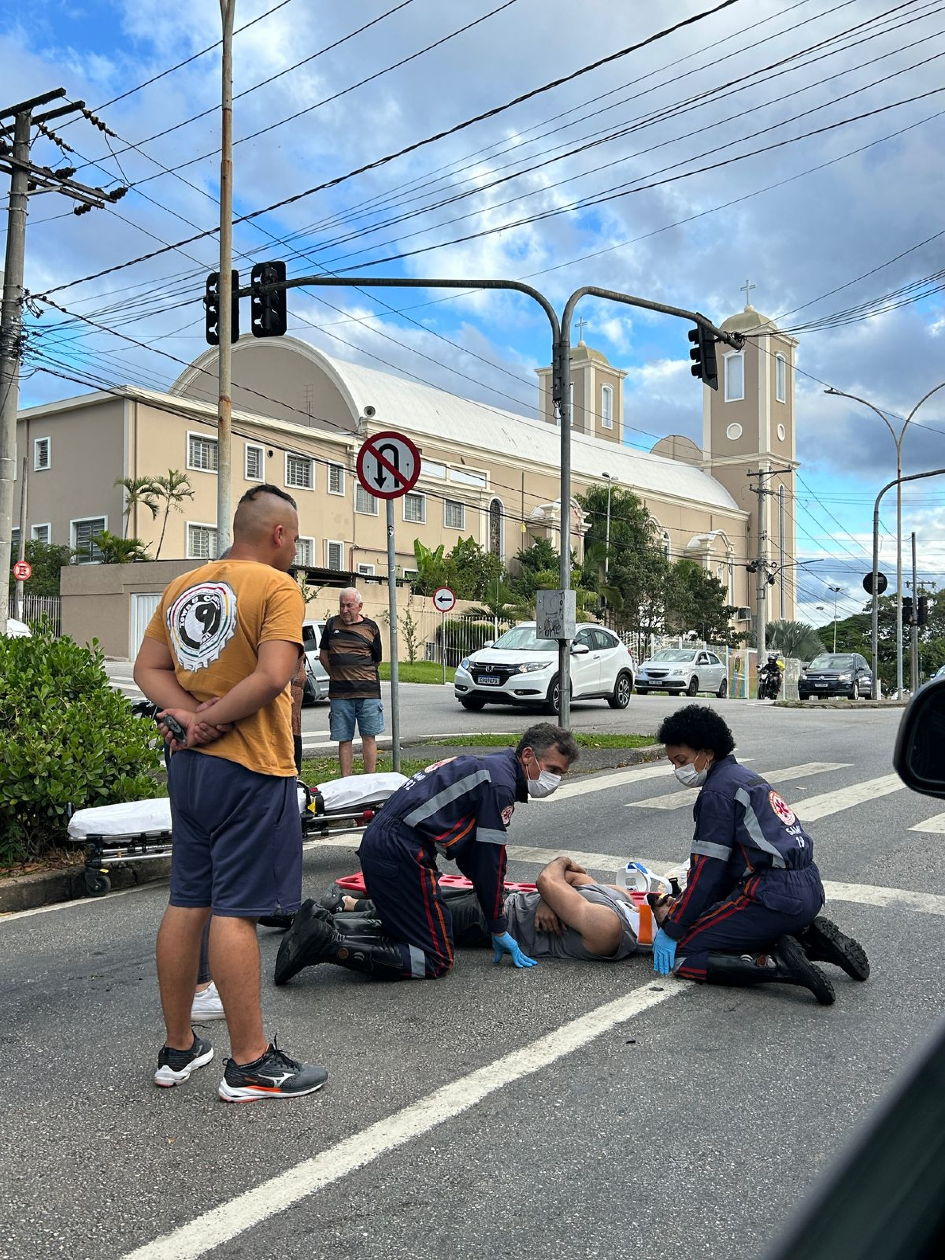 Uma colisão entre carro e moto deixou um motociclista ferido na tarde desta segunda-feira (14), na avenida São Paulo, em frente à Paróquia Santo Antônio. O acidente foi atendido por equipes do Serviço de Atendimento Móvel de Urgência (Samu). Não há informações sobre a causa da batida.