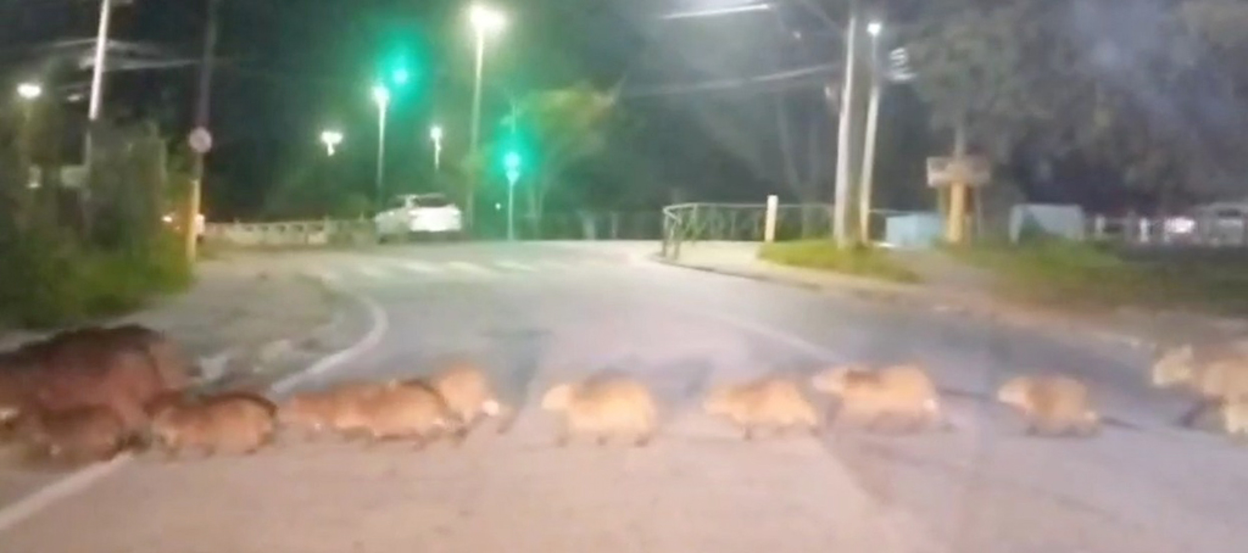 Uma cena inusitada chamou a atenção do estudante Marcos Moura Galli, de 13 anos, na noite de 14 de abril. Pelo menos 13 capivaras foram vistas caminhando tranquilamente pela avenida Vereador Newton Vieira Soares, no centro de Votorantim, nas proximidades do Capivara Skate Park, cujo nome homenageia o animal da fauna brasileira.
