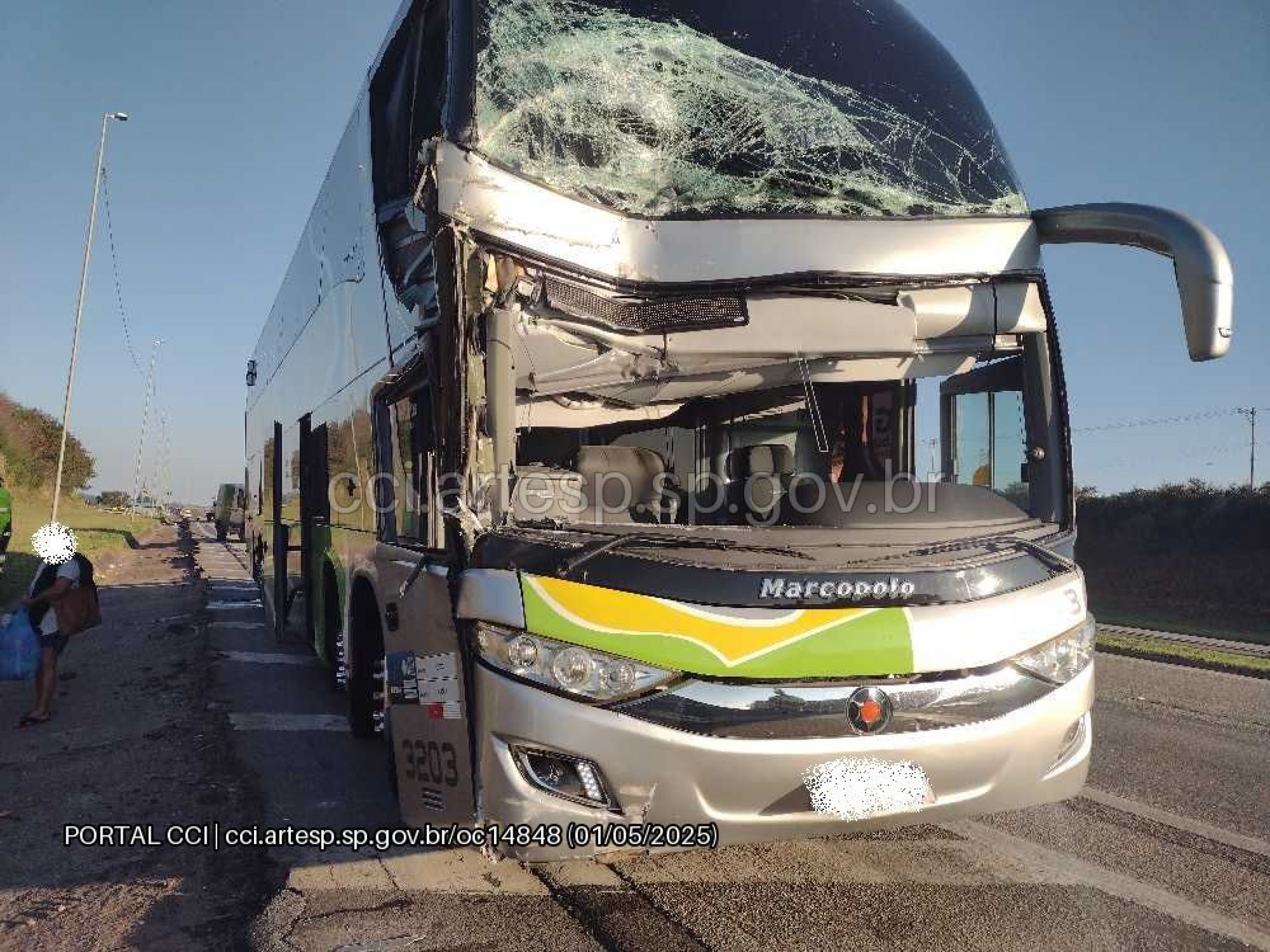 Segundo a Agência de Transporte do Estado de São Paulo (Artesp), o motorista do ônibus informou que trafegava pela via, quando bateu na traseira da carreta que estava saindo da balança. O ônibus parou no acostamento e o motorista do caminhão fugiu.