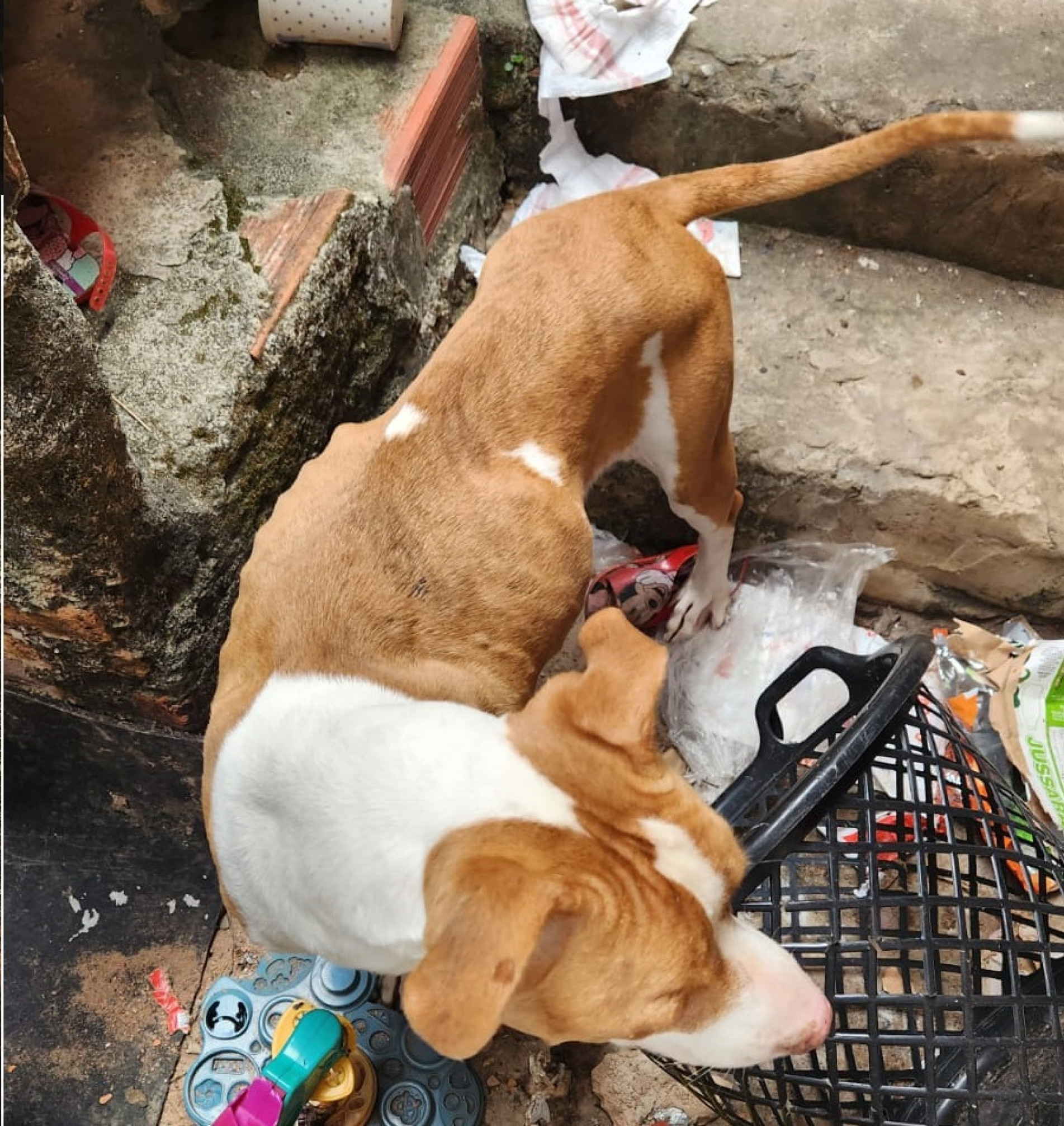 Os cães foram encontrados desnutridos, sem acesso a água ou alimento, em um ambiente com fezes e lixo acumulados. Eles receberam atendimento no local e foram encaminhados para cuidados pela equipe do Bem-Estar Animal.