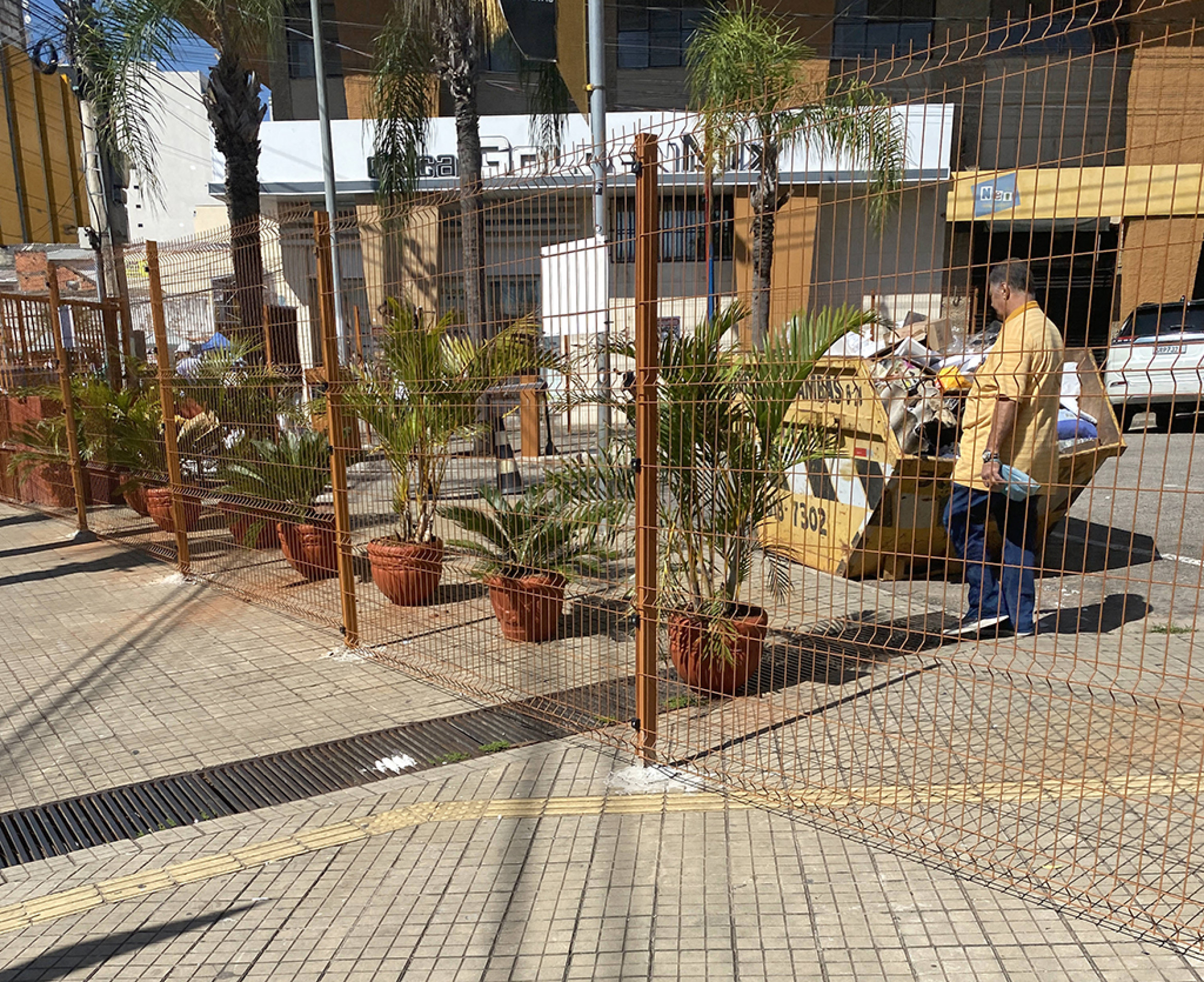 “As motos, por exemplo, entravam e saíam pela calçada. Estava muito problemático isso. Então, foram colocadas as grades para organizar esse fluxo. À noite, ela fica fechada, mas na parte de cima fica aberta, as pessoas passam normalmente. Ela fica inteira aberta ù só essa lateral que é fechada para impedir a passagem de motos e carros.”