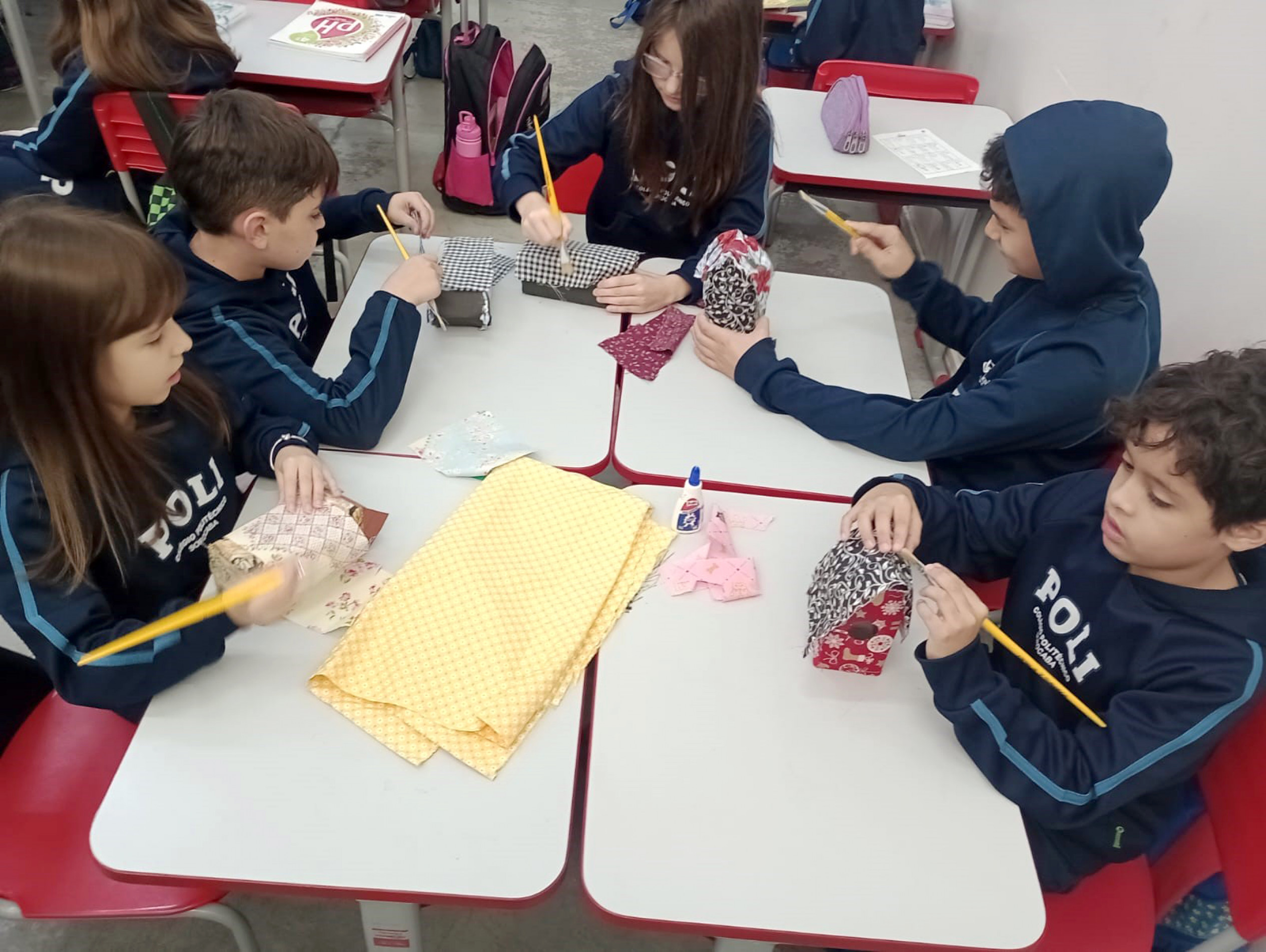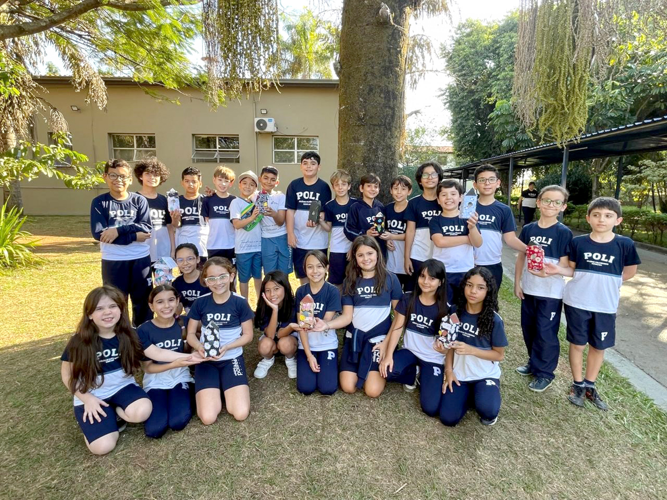Os alunos dos 4º anos do Poli participaram de uma atividade especial ministrada pelas professoras Carmen Lúcia, Kátia Vega e Mariana Martin. A proposta teve como objetivo principal trabalhar a consciência ambiental, a criatividade e a coordenação motora das crianças. Os alunos confeccionaram casinha de passarinho utilizando caixas de leite recicladas.