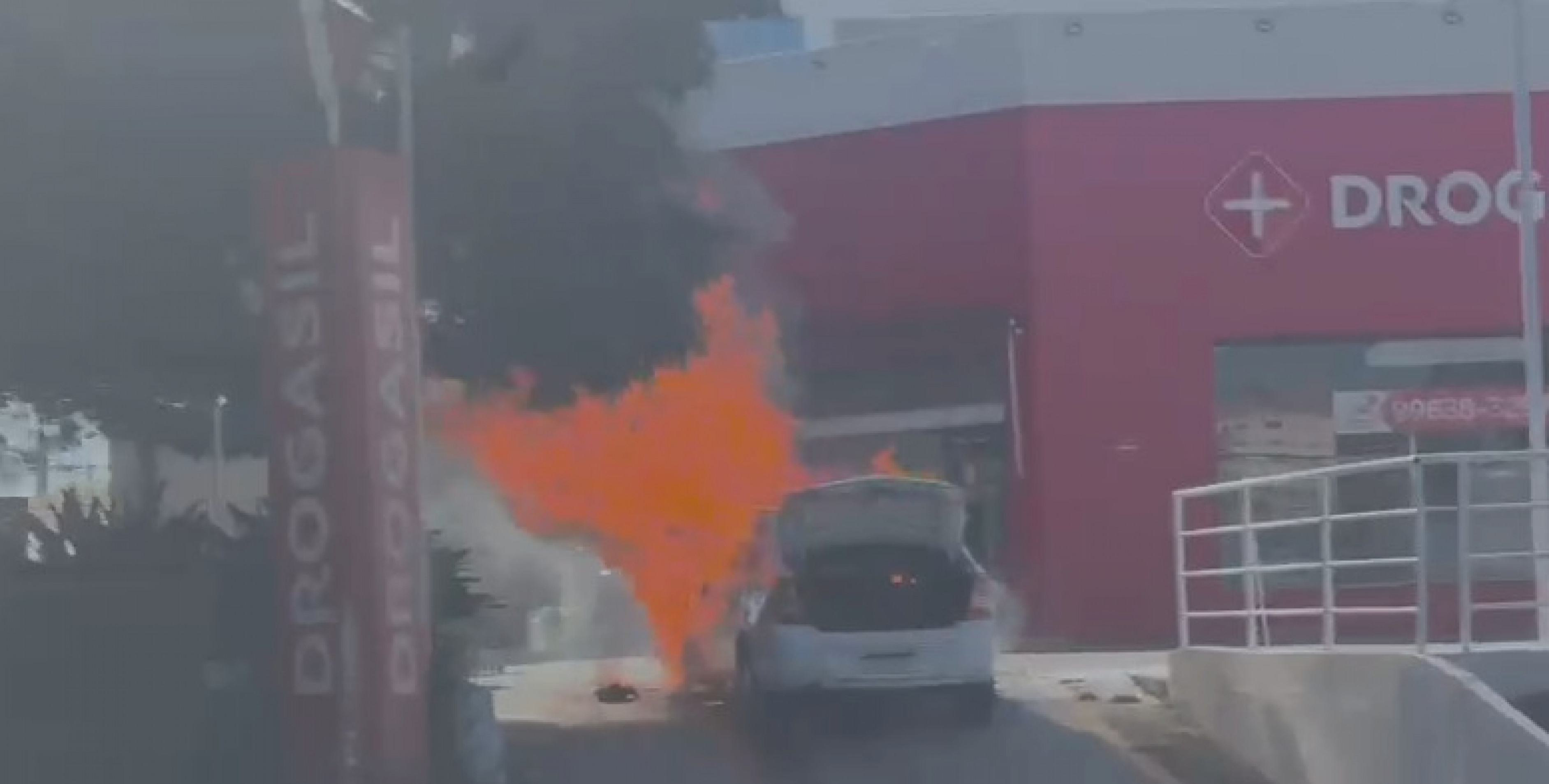 Carro pega fogo em frente a farmácia na av. General Osório e chama atenção