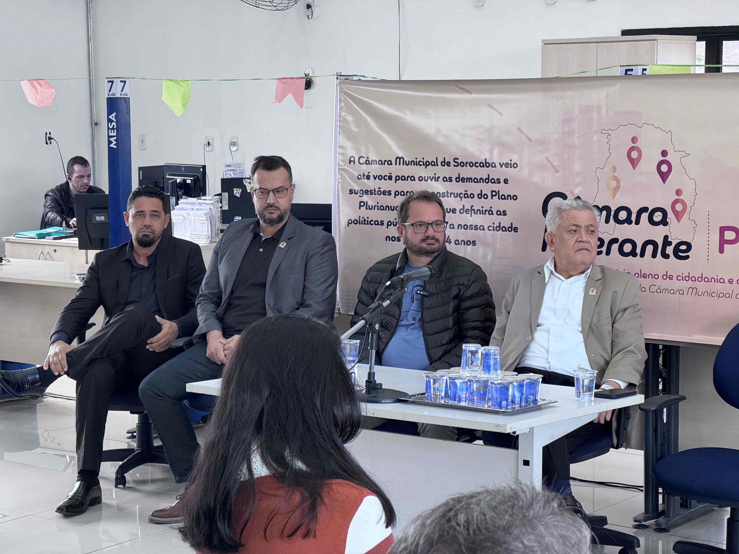Entre os presentes estavam os vereadores Luis Santos (Republicanos), presidente da Câmara, Fernando Dini (PP), Alexandre da Horta (Solidariedade), Fábio Simoa (Republicanos) e Rogério Marques (Agir). No início do evento, cada vereador fez um discurso acerca dos objetivos do Plano Plurianual (PPA) de 2026 a 2029 e falou sobre o compromisso com as demandas levantadas pela população.