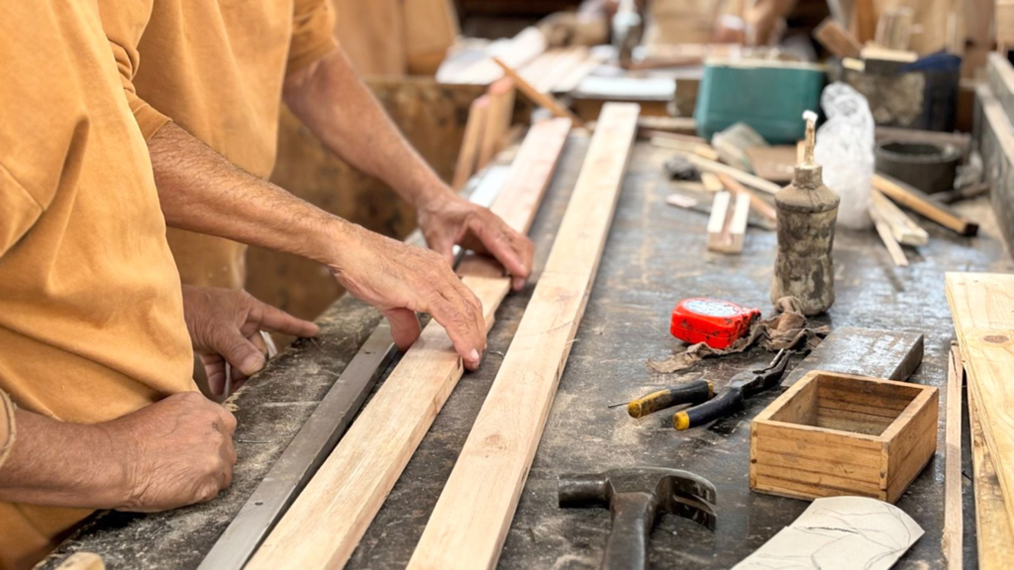 Presos da Penitenciária Antonio de Souza Neto (P-2), no bairro de Aparecidinha, em Sorocaba, reutilizam madeiras que seriam descartadas e as transformam em artefatos e peças úteis. A oficina de marcenaria da unidade prisional está em atividade desde 2019 e hoje emprega 12 detentos.