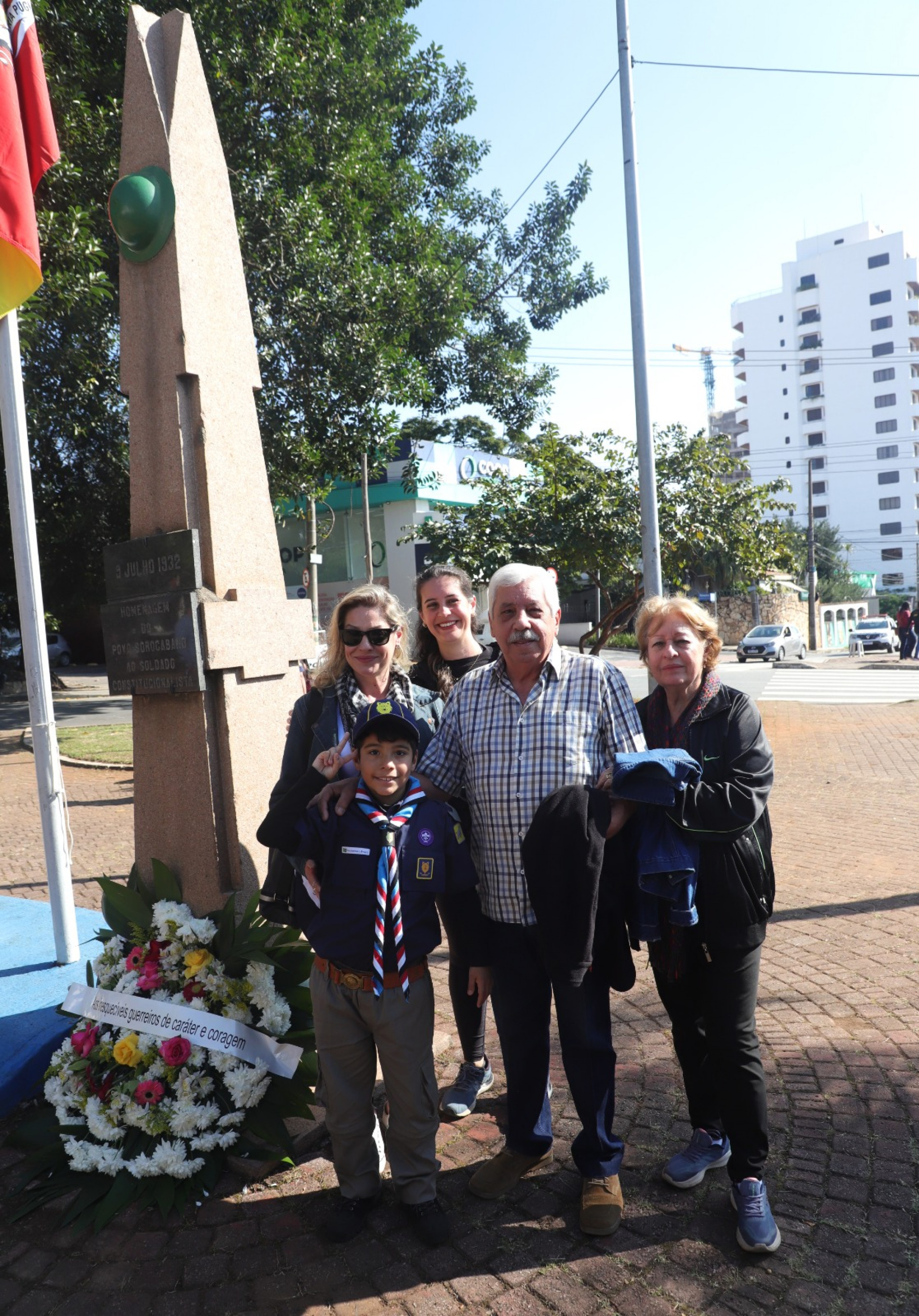 Após a solenidade na praça Nove de Julho, um desfile de autoridades, viaturas oficiais e grupos tradicionais, como os escoteiros, encerrou a celebração. José Mauro Bessornia, oficial reformado da Polícia Militar, assistiu ao neto Joaquim de Castro Bessornia, de 8 anos, desfilar pela primeira vez com o Grupo Tobias de Aguiar, um momento de emoção para o avô, que viu o pai, Tisiano Bessornia, lutar na Revolução.