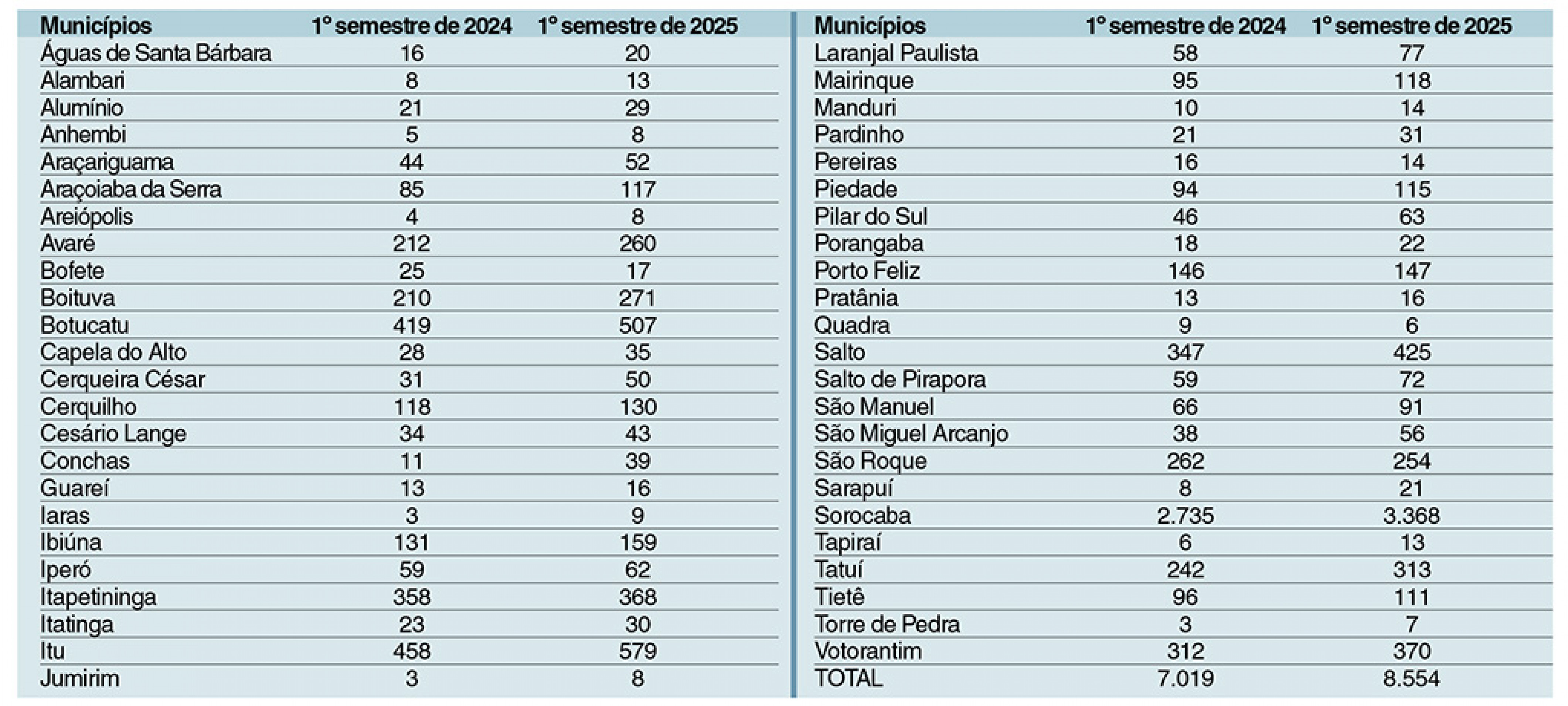 Dados são referentes ao 1º semestre do ano; só em Sorocaba, foram 3.368 novos empreendimentos