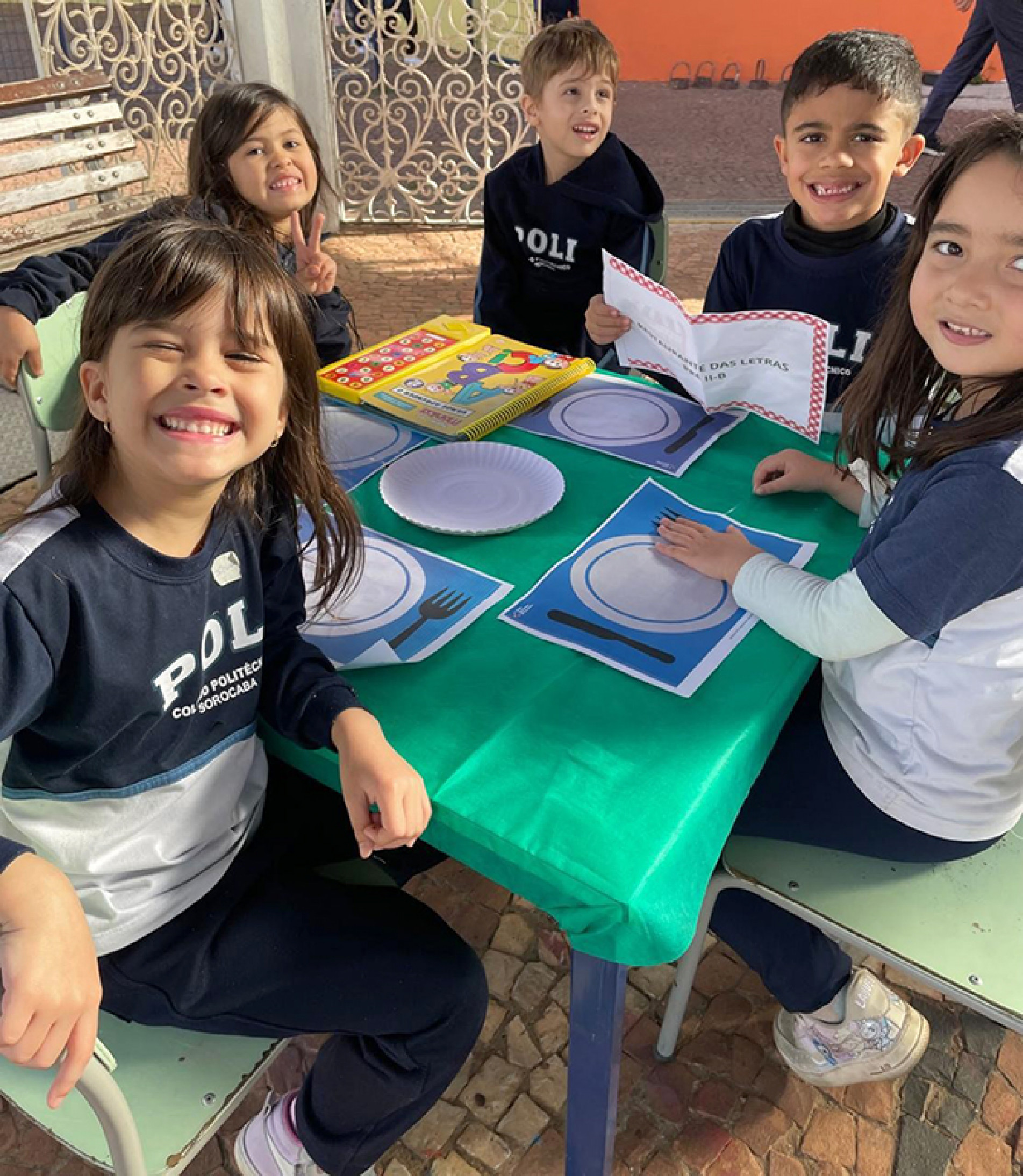 Em um ambiente cuidadosamente preparado para despertar o faz de conta, os pequenos puderam escolher seus pratos preferidos através das cartas ilustradas e, em seguida, tinham o desafio de montar com letras móveis a palavra correspondente ao alimento “servido” no prato. “Mais do que formar palavras, os alunos degustaram conhecimento, estimularam a autonomia, a atenção e o raciocínio linguístico, tudo isso em um contexto de brincadeira e interação”, explicou.