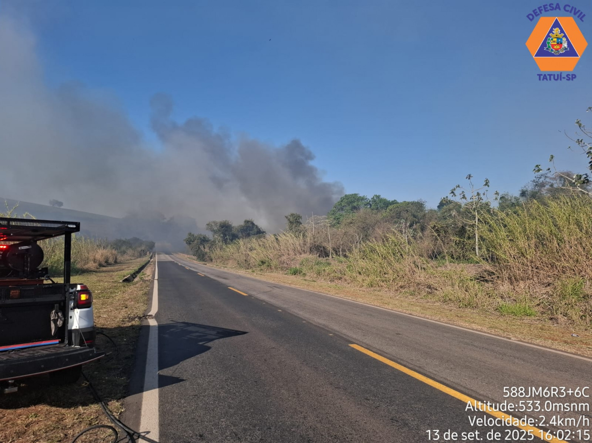 Por fim, um incêndio de grande porte atingiu às margens da rodovia Vicente Palma (SP-129), via de ligação entre os municípios de Tatuí e Boituva. O incêndio em vegetação cultivada (canavial) foi combatido por caminhões da Usina do município de Cerquilho, pelo Corpo de Bombeiros e Defesa Civil. A ocorrência começou por volta de 22h37 deste sábado (13) e foi finalizada no começo da madrugada de domingo. Ninguém ficou ferido e, até o momento, não foi possível dimensionar a área afetada.