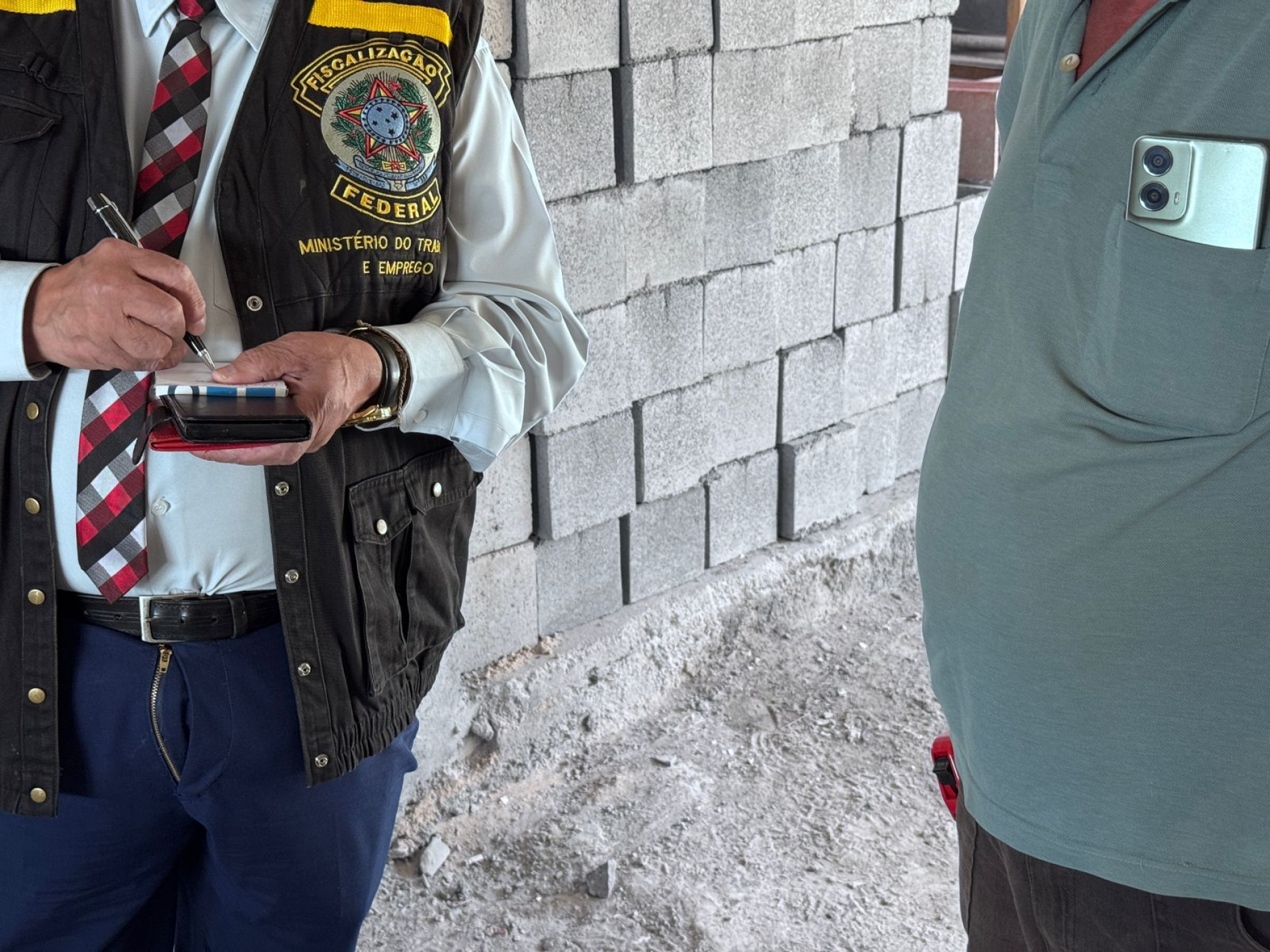 Ao chegar ao local, o MTE notou diversas irregularidades. Cerca de cinco pessoas, de uma empresa terceirizada, estavam trabalhando, incluindo em altura, sem nenhum Equipamento de Proteção Individual (EPI), dos mais simples, como capacete, bota, luvas, até os mais complexos. Também havia a ausência de bandeja de segurança, também chamada de aparalixo, fixada na parte externa para evitar quedas de materiais, ferramentas e detritos. Além das irregularidades a olho nu, Ubiratan Vieira também constatou que os trabalhadores não eram registrados.