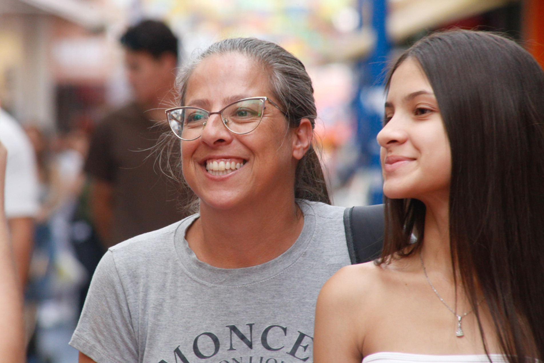 Já a auxiliar de limpeza Kelly de Oliveira Cavalcante prefere iniciar as compras quando o movimento ganha força e o clima de Natal se intensifica. Acompanhada da filha Emília, ela aproveita para escolher com calma. “Gosto de procurar roupas, calçados e presentes para a família. Adoro essa época do ano e as lojas abertas até mais tarde — quem trabalha consegue vir direto do serviço, sem correria”, diz.