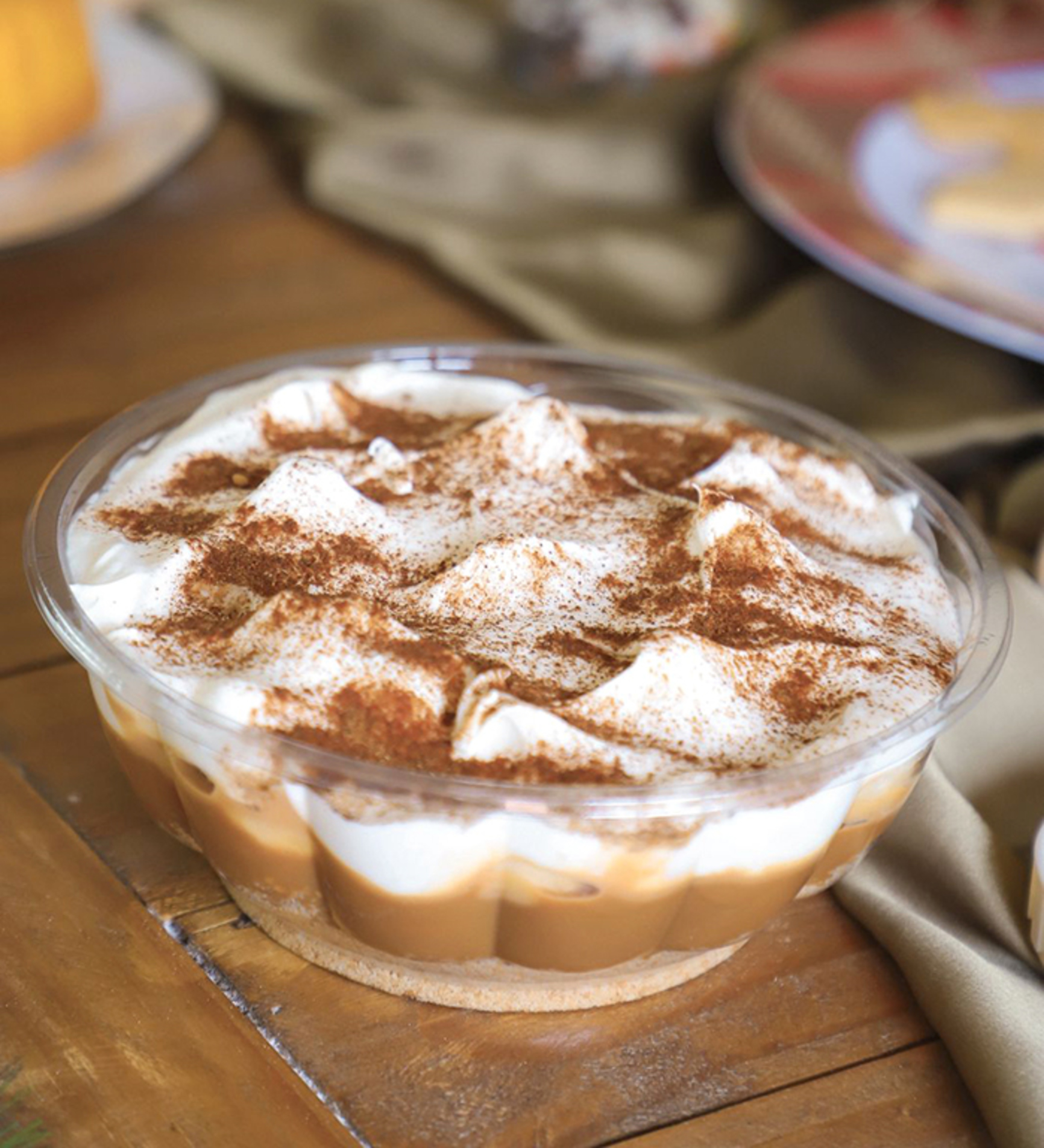 A confeiteira detalha que a banoffee leva farofa de bolacha, doce de leite, bananas frescas, chantilly feito com nata e canela. “Na torta holandesa vai um creme especial, e as folhatas são feitas com creme e bolacha folhada, em sabores como frutas vermelhas, uva, morango, pêssego, coco e a novidade deste ano, a folhata de doce de leite com nozes”, conta.