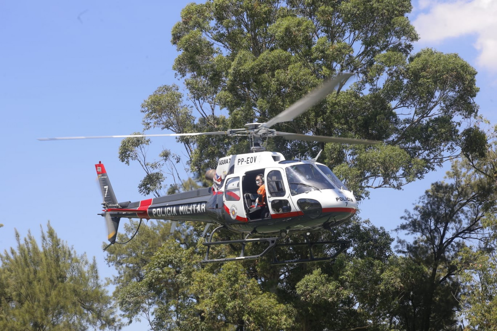 Helicóptero Águia da Polícia Militar foi acionado para apoio ao resgate das vítimas